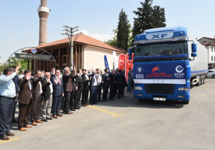 Bursa Büyükşehir Belediyesi ve Beşir Derneği işbirliğiyle toplanan 2 Tır dolusu battaniye ve gıda malzemesi,...