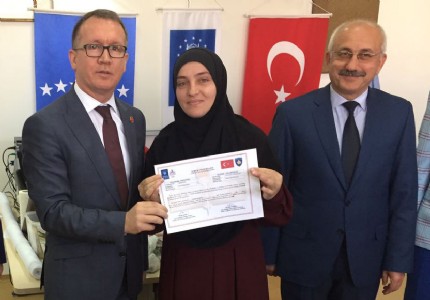 BUSMEKin Kosovadaki eğitimlerine devam eden Konfeksiyon Makineleri Kullanımı ve Giyim ikinci dönem kursiyerleri,...
