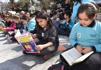 53. Kütüphaneler Haftası etkinlikleri kapsamında İnsan Her Yerde Okur fikriyle bir araya gelen vatandaşlar,...