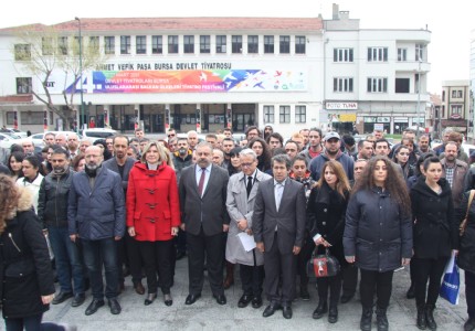 Bursada tiyatro sanatına emek veren sanatçılar, 27 Mart Dünya Tiyatro Gününde Atatürk Anıtına çelenk koydu.