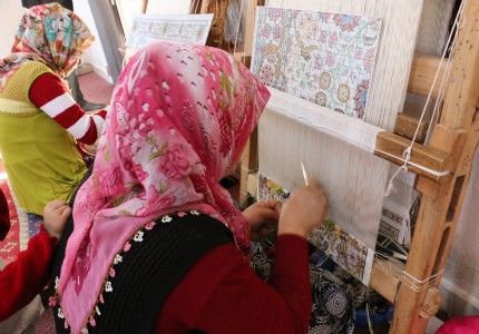İnegöl İhsaniyede ipek halı üretimi başladı.