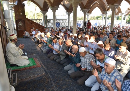 Bursada bayram namazı, Merinos Parkta Harem-i Şerifteki Osmanlı revaklarından esinlenerek oluşturulan açık...