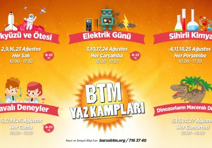 BTMnin 5 ile 13 yaş arası çocuklara yönelik eğlence ve bilimin iç içe olduğu yaz kampları Ağustos ayında başlıyor.