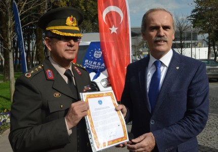 Büyükşehir Belediye Başkanı Recep Altepe, Bursa Garnizon Komutanı Tümgeneral Seyfullah Saldıkı ağırladı.