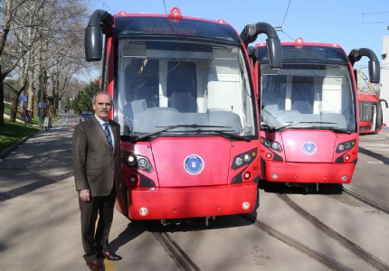 Bursa Büyükşehir Belediyesi, Türkiyenin ilk yerli tramvaylarından oluşan 6 araçlık filosuna, çift sürücü kabinli 4...
