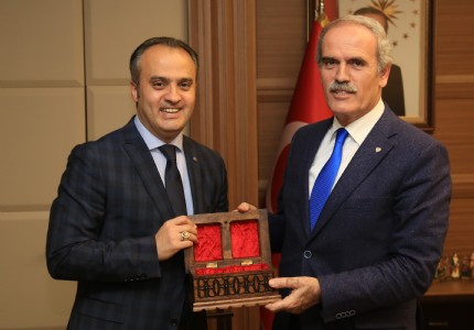 Büyükşehir Belediye Başkanı Recep Altepe, Hayırlı olsun ziyaretleri kapsamında Kestel Belediye Başkanı Yener Acar...
