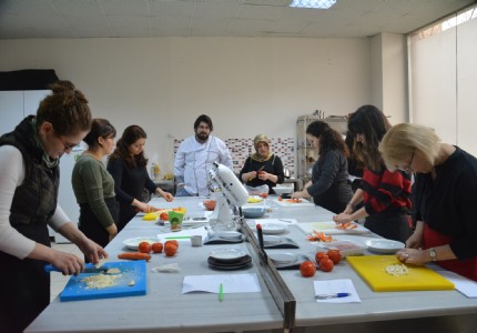 BUSMEK Erikli Mesleki Eğitim Merkezinde kursiyerlere makarna ve sosları yapımı kursu verilirken, kursiyerler 8...