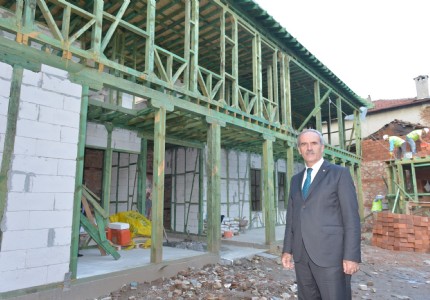 Büyükşehir Belediye Başkanı Recep Altepe, Hisar bölgesindeki Çandarlı İbrahim Paşa Hamamının restorasyonunun...