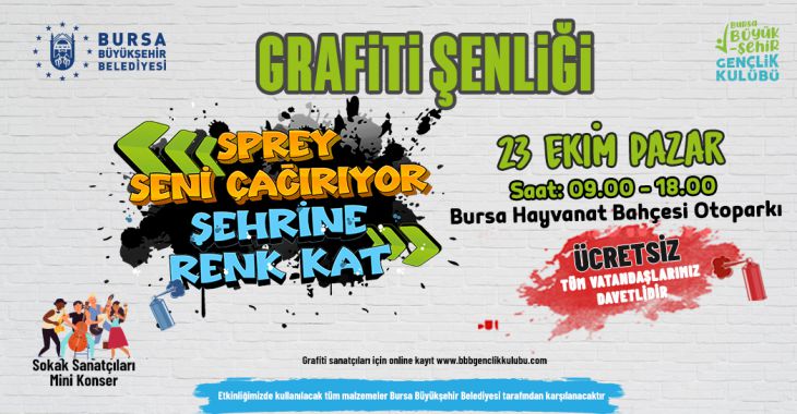 Bursa Büyükşehir Belediyesi tarafından ‘Sprey seni çağırıyor. Şehrine renk kat’ sloganıyla düzenlenen Grafiti...