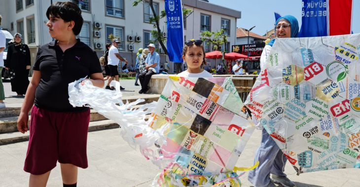 Bursa Büyükşehir Belediyesi tarafından çevre bilincinin artırılması amacıyla Mudanya sahilinde düzenlenen Atık Poşet...