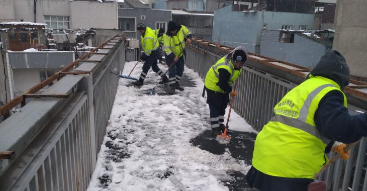 Bursa’da ana arterlerde ve kırsal mahalle yollarında karla mücadele çalışmalarını gece gündüz demeden sürdürerek...