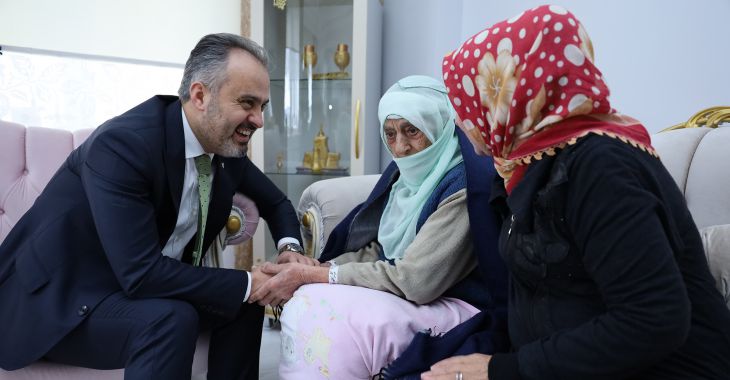 Bursa Büyükşehir Belediye Başkanı Alinur Aktaş, Gemlik’te yaşayan 107 yaşındaki Zahide Solmaz’ı evinde ziyaret...