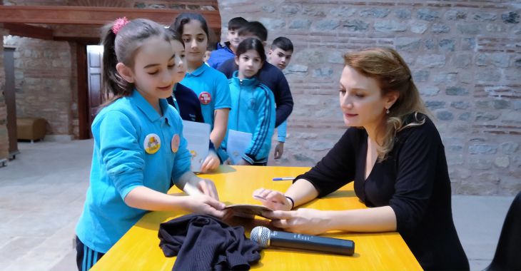 Bursa Büyükşehir Belediyesi Kütüphaneler Şube Müdürlüğü’nün düzenlediği Okur-Yazar Buluşmaları etkinliğinde; minik...