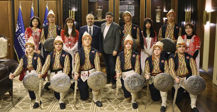 Büyükşehir Belediyesi’nin Bursa’nın Güney Kore’de tanıtılmasına yönelik çalışmalar kapsamında Türkçe ve kılıç kalkan...