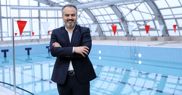 Bursa Büyükşehir Belediyesi tarafından İnegöl İlçesi'ne kazandırılan Mahmudiye Yarı Olimpik Yüzme Havuzu, açılışa...