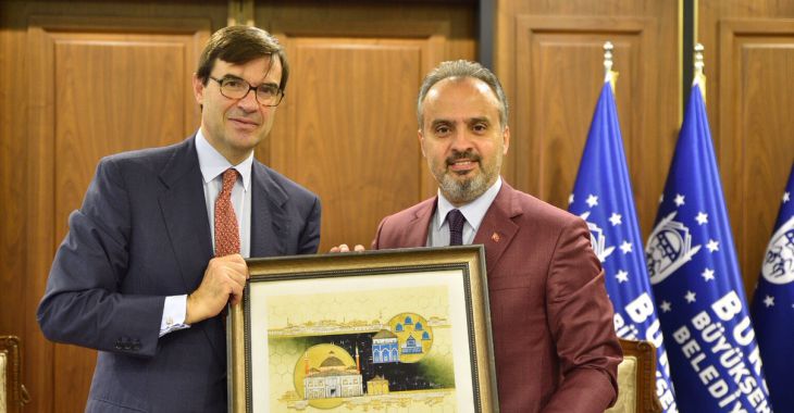 Bursa Büyükşehir Belediye Başkanı Alinur Aktaş’ı ziyaret eden İspanya Ankara Büyükelçisi Juan Gonzales Barba, Türkiye...