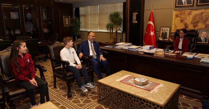 Başkan Alinur Aktaş, 23 Nisan Ulusal Egemenlik ve Çocuk Bayramı dolayısıyla Karamehmet Ortaokulu öğrencilerini...