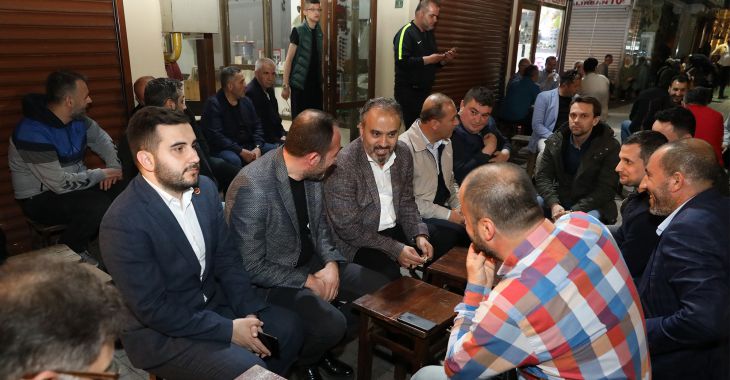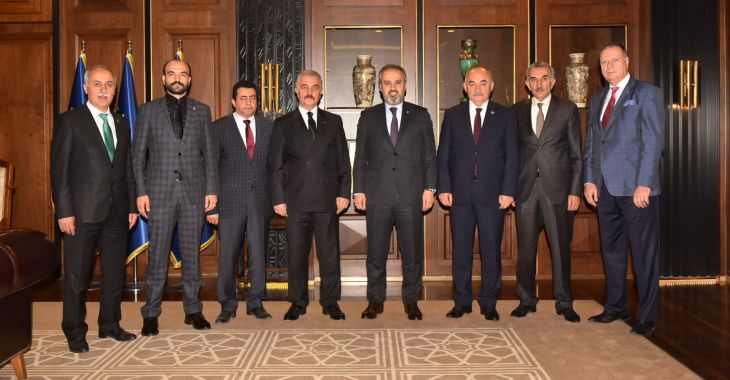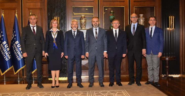 Bursa Büyükşehir Belediye Başkanı Alinur Aktaş, Başkanlık makamında ağırladığı Nilüfer Belediye Başkanı Turgay...