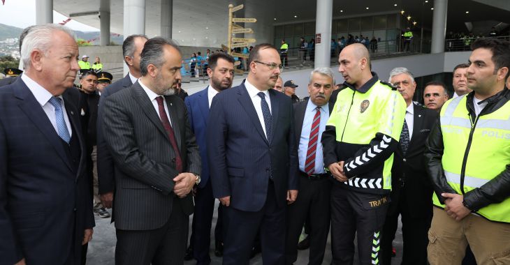 Bursa Büyükşehir Belediye Başkanı Alinur Aktaş, Milliyetçi Hareket Partisi (MHP) Genel Sekreteri İsmet Büyükataman ve...