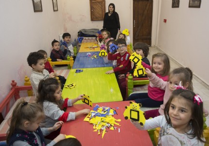 Küçük öğrenciler, Mudanya Hasan Bey Kültür Merkezinde katıldıkları atölye çalışmalarıyla yeteneklerini keşfediyor.