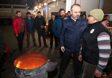 Sabah namazını Şükraniye Sarı Camiinde kılarak namazın ardından vatandaşlarla bereket sofrasında buluşan Büyükşehir...