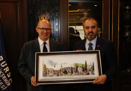 Bursa Büyükşehir Belediye Başkanı Alinur Aktaşı ziyaret eden İngiltere Ankara Büyükelçisi Dominick Chilcott, Bursa...