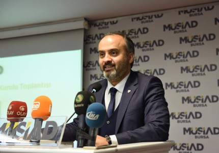 Bursa Büyükşehir Belediye Başkanı Alinur Aktaş, Müstakil Sanayici ve İşadamları Derneği (MÜSİAD) Bursa Şubesinin...