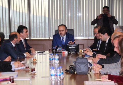 Büyükşehir Belediye Başkanı Alinur Aktaşın başkanlığında Osmangazi, Yıldırım, Nilüfer ve İnegöl belediye başkanları...