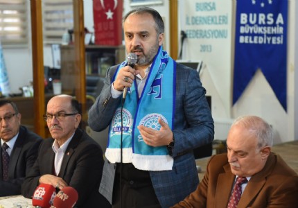 Bursa İl Dernekleri Federasyonu üyeleriyle bir araya gelen Büyükşehir Belediye Başkanı Alinur Aktaş, Ocak 2019da...