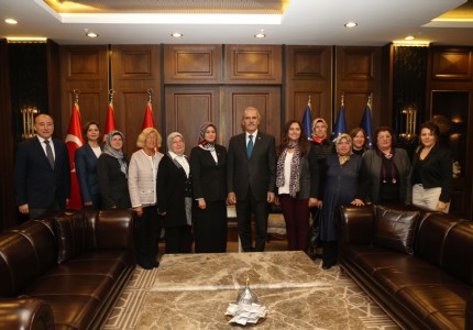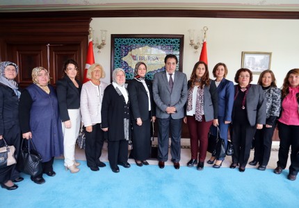 Bursa Valisi İzzettin Küçük, göreve yeni seçilen Bursa Kent Konseyi Kadın Meclisi Başkanı Mihrimah Kocabıyık ile...