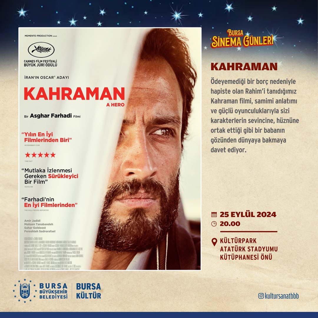 Ödeyemediği bir borç nedeniyle hapiste olan Rahim'i tanıdığımız Kahraman filmi,, samimi anlatımı ve güçlü oyunculuklarıyla sizi karakterlerin sevincine, hüznüne ortak ettiği gibi bir babanın gözünden dünyaya bakmaya davet ediyor.