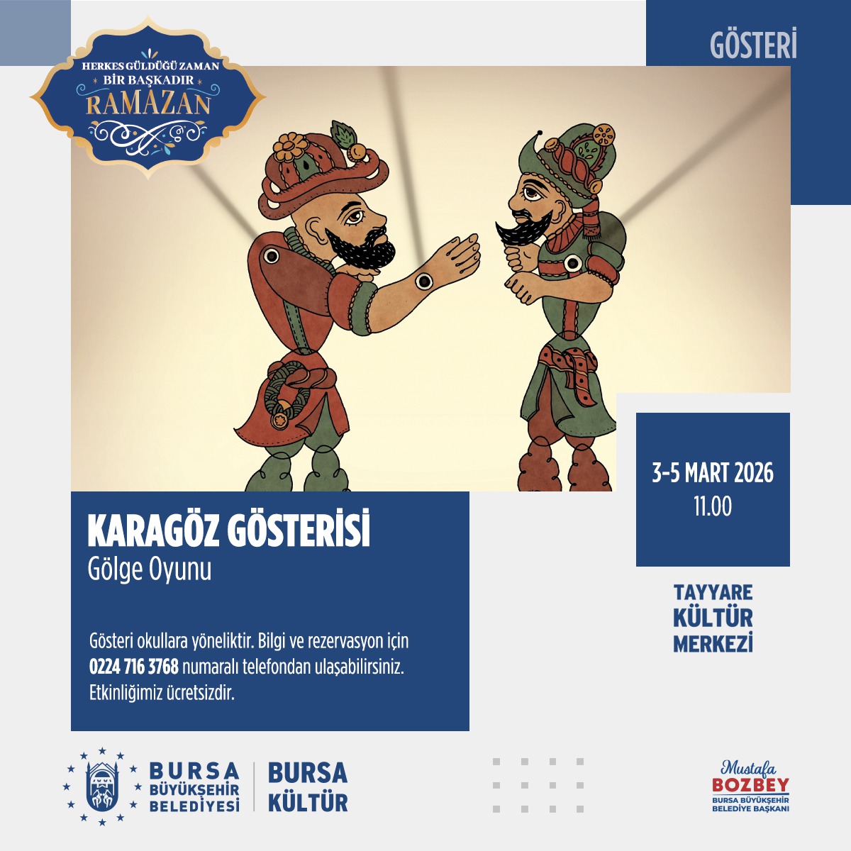 Karagöz Gösterisi ile Ramazan neşesi Tayyare Kültür Merkezi’nde!