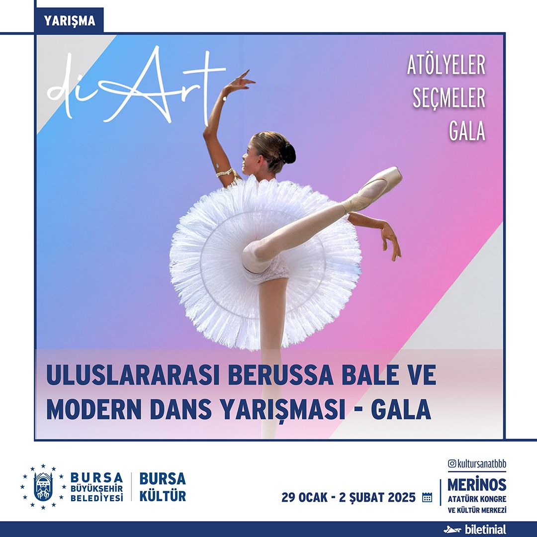 Atölyeler, seçmeler, yarışma ve galadan oluşan Uluslararası Berussa Bale ve Modern Dans Yarışması ve Galası 29 Ocak - 2 Şubat tarihlerinde Merinos Atatürk Kongre ve Kültür Merkezi'nde gerçekleşcektir.