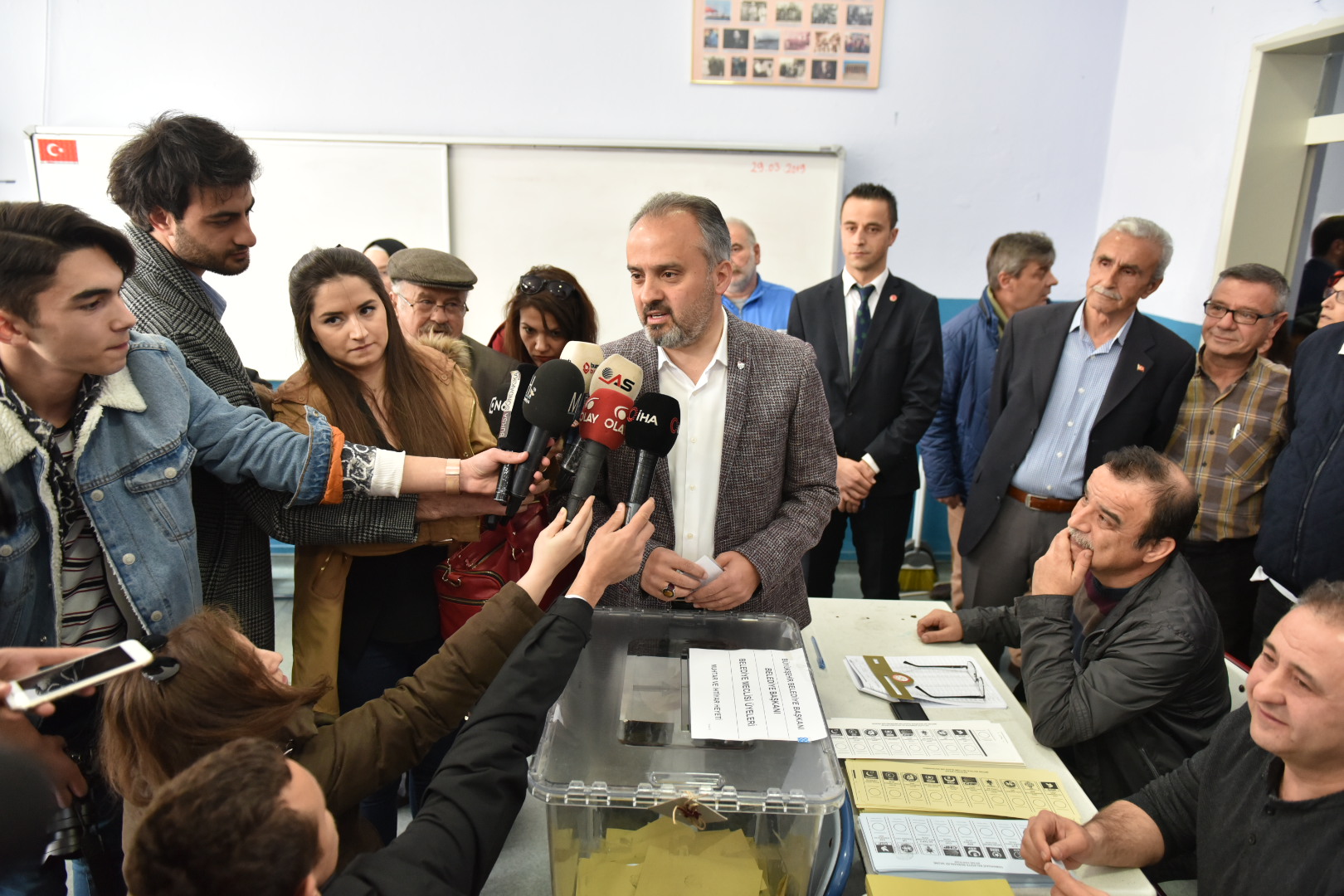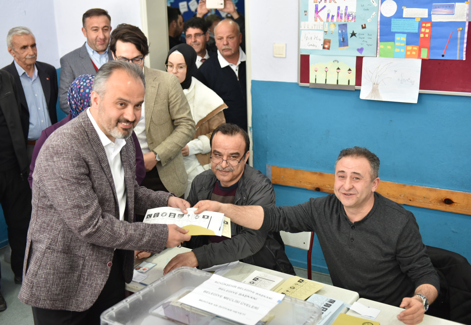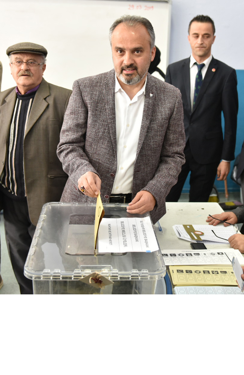 Bursa Büyükşehir Belediye Başkanı Alinur Aktaş, eşi Sevinç Aktaş, oğlu Hilmi Aktaş ve kızı Sıla Aktaş ile birlikte Çekirge 1. Murat İlk ve Orta Okulu’na giderek, 1063 numaralı sandıkta oyunu kullandı. Okulda vatandaşlarla da sohbet eden Başkan Aktaş, basın mensuplarına yaptığı açıklamada, “Vatandaşlık görevimizi yerine getirdik, oylarımızı kullandık. Demokrasimiz, şehirlerimiz ve belediyelerimiz için güzel bir gün olsun” dedi.