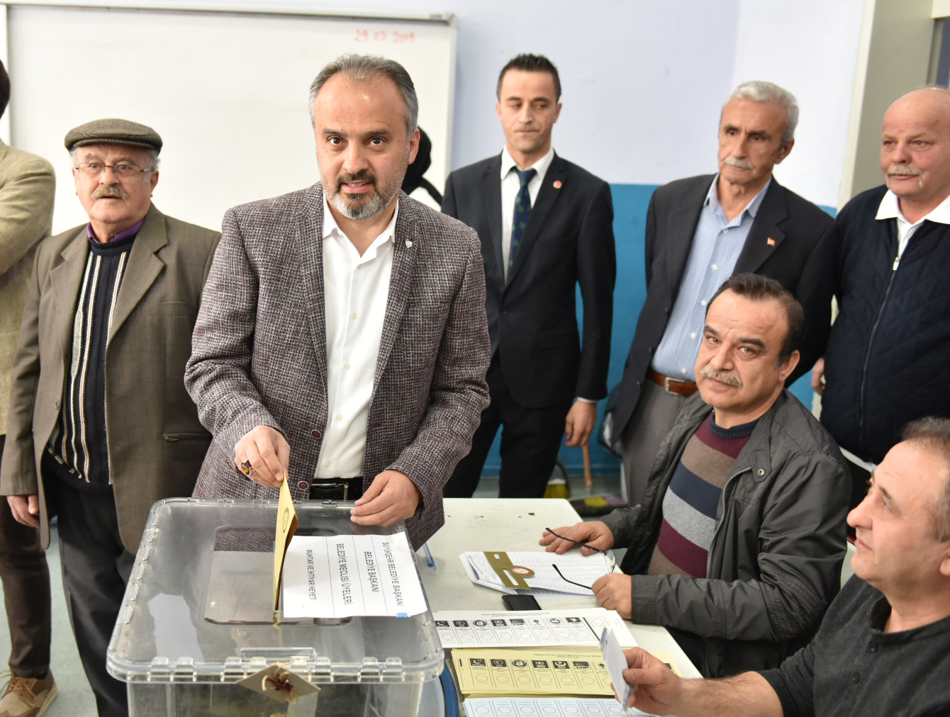 BURSA – Bursa Büyükşehir Belediye Başkanı Alinur Aktaş, mahalli idareler genel seçimi için oyunu kullanırken, sonuçların Bursa ve Türkiye için hayırlı olmasını diledi.