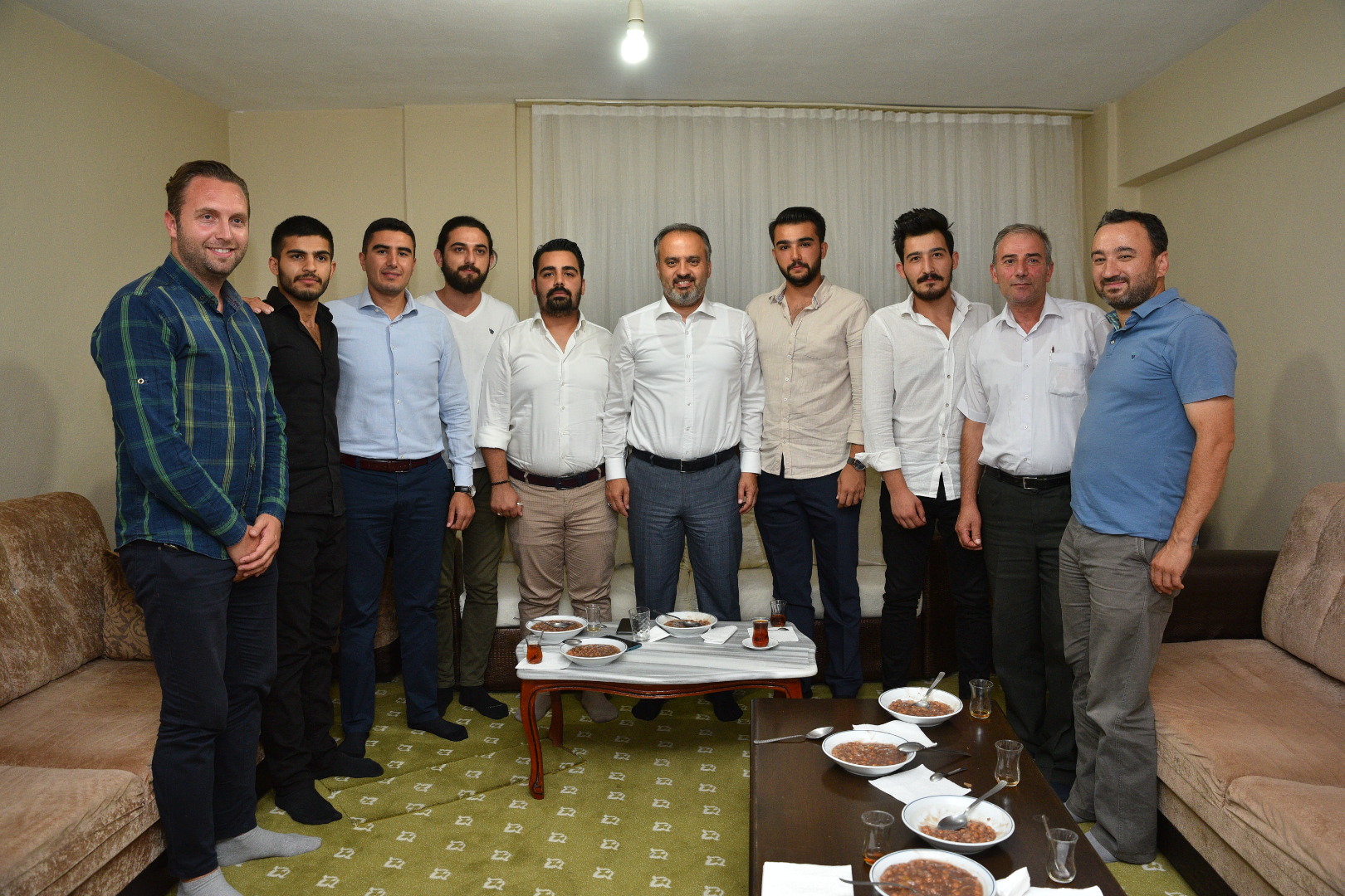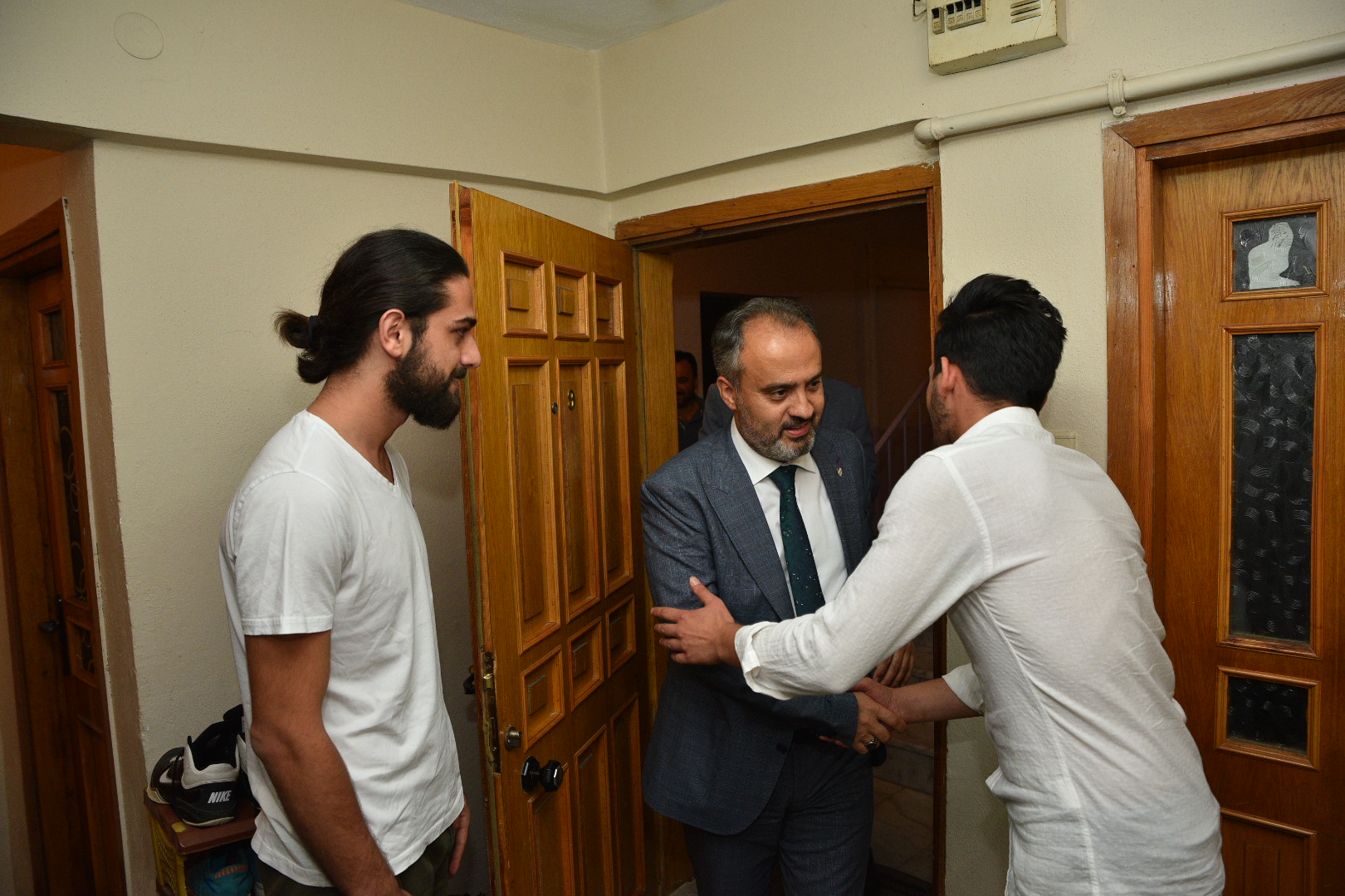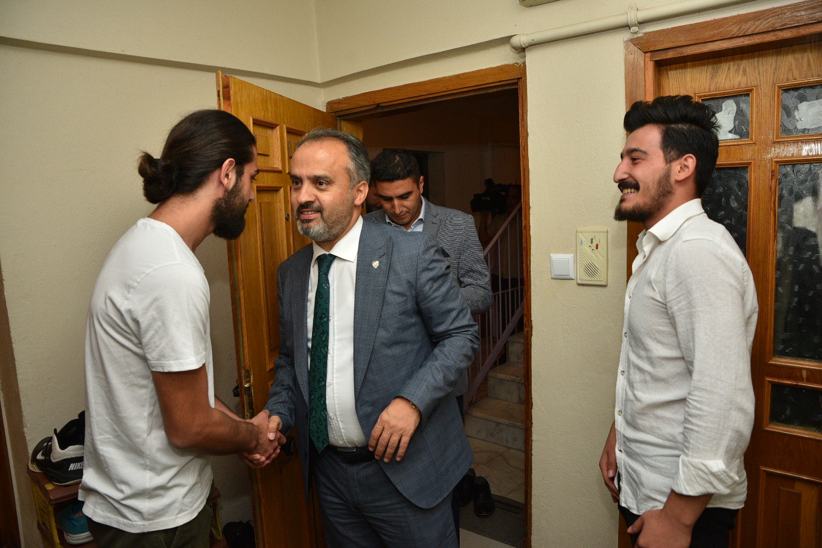 Büyükşehir Belediye Başkanı Alinur Aktaş, Bursa’da üniversite öğrenimini sürdüren Ali İşleyen’in sosyal medyadan yaptığı davet üzerine İşleyen ve arkadaşlarını, evlerinde ziyaret etti. Ziyaret sırasında kendisine aşure ikram edilen Başkan Aktaş, “Bu akşam hem öğrencilik yıllarımıza gittik, hem Muharrem ayının müjdecisi aşurenin tadına baktık, hem de öğrenci kardeşlerimizle sohbet ettik, Bursa’mızı ve ülkemizi konuştuk. Çok mutlu oldum, çok teşekkür ediyorum” dedi.