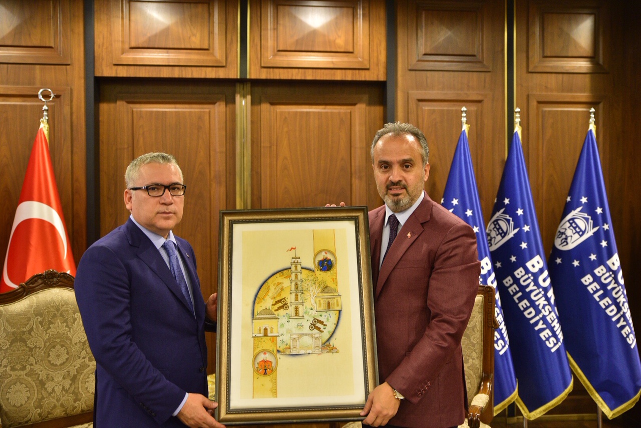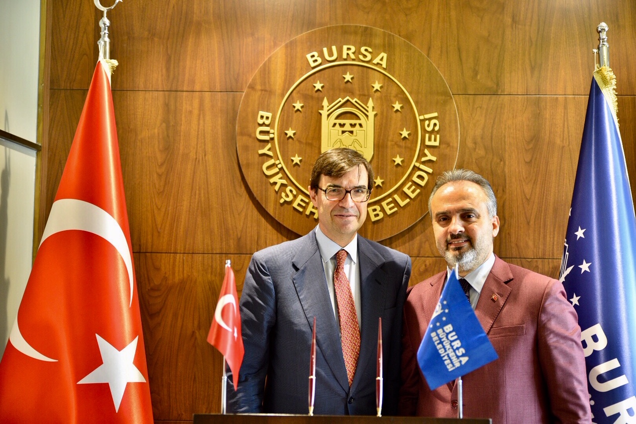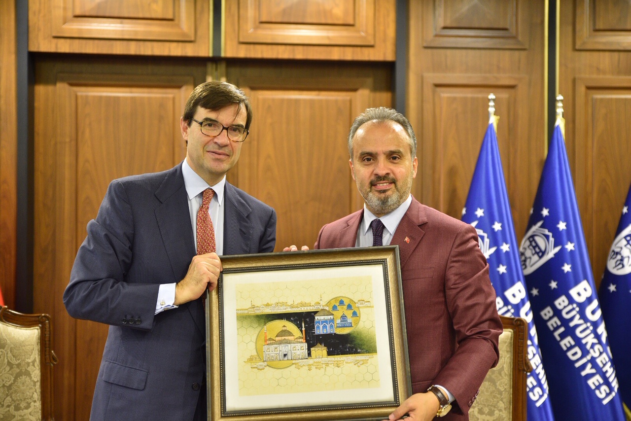 BURSA – Bursa Büyükşehir Belediye Başkanı Alinur Aktaş’ı ziyaret eden İspanya Ankara Büyükelçisi Juan Gonzales Barba, Türkiye ile İspanya arasındaki diyaloğu, kardeş şehir faaliyetleriyle geliştirmek istediklerini söyledi.