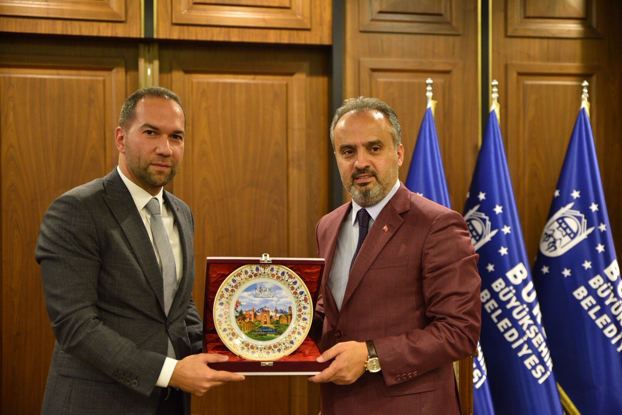 Öte yandan Bursa’nın kardeş şehirlerinden olan Niğde, ‘Anadolu Günleri’ kapsamında stant açan şehirler arasında… Niğde Valisi Yılmaz Şimşek ile Niğde Belediye Başkanı Emrah Özdemir ve Niğde milletvekilleri de BİLDEF tarafından gerçekleştirilen ‘Anadolu Günleri’ programı nedeniyle geldikleri Bursa’da, Büyükşehir Belediye Başkanı Alinur Aktaş’ı ziyaret etti. Başkan Aktaş, sosyal ve kültürel içerikli organizasyonlarla şehirlerin birbirlerine yakınlaşmasının önemli olduğunu vurgulayarak konuklarına Bursa'ya dair hediyeler verdi.
