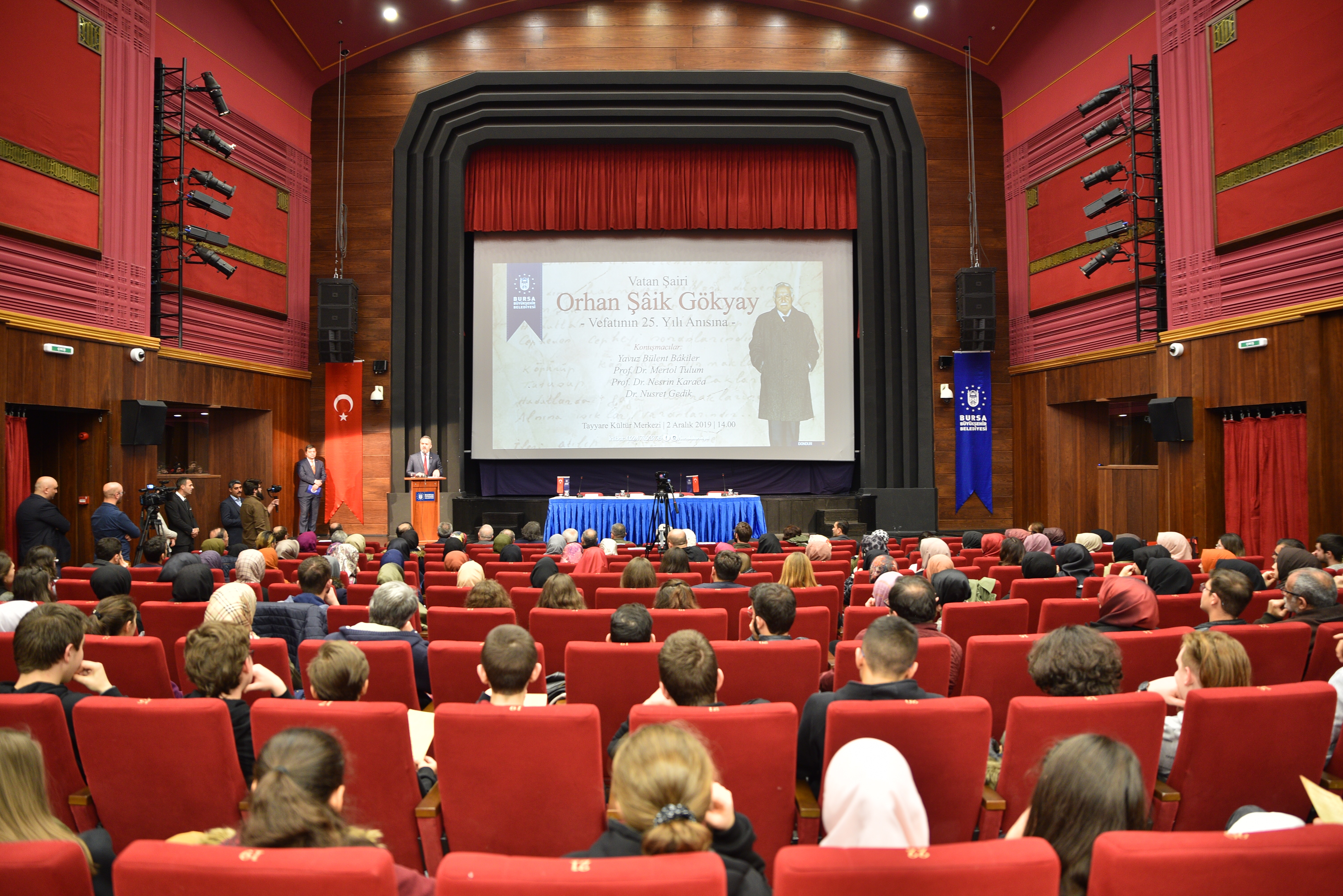 Tayyare Kültür Merkezi’nde Dr. Nusret Gedik moderatörlüğünde düzenlenen programa; Başkan Aktaş’ın yanı sıra Şair ve Yazar Yavuz Bülent Bakiler, Orhan Şaik Gökyay’ın yakın arkadaşlarından Prof.Dr. Mertol Tulum ve Uludağ Üniversitesi’nden Prof.Dr. Nesrin Karaca katıldı. Katılımcıların Orhan Saik Gökyay hakkındaki anı ve düşüncelerini anlattığı program, özellikle lise öğrencileri tarafından büyük ilgiyle takip edildi.