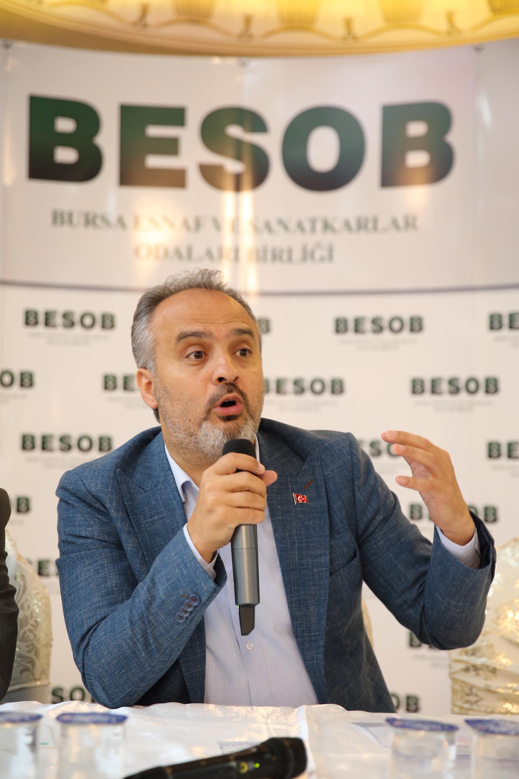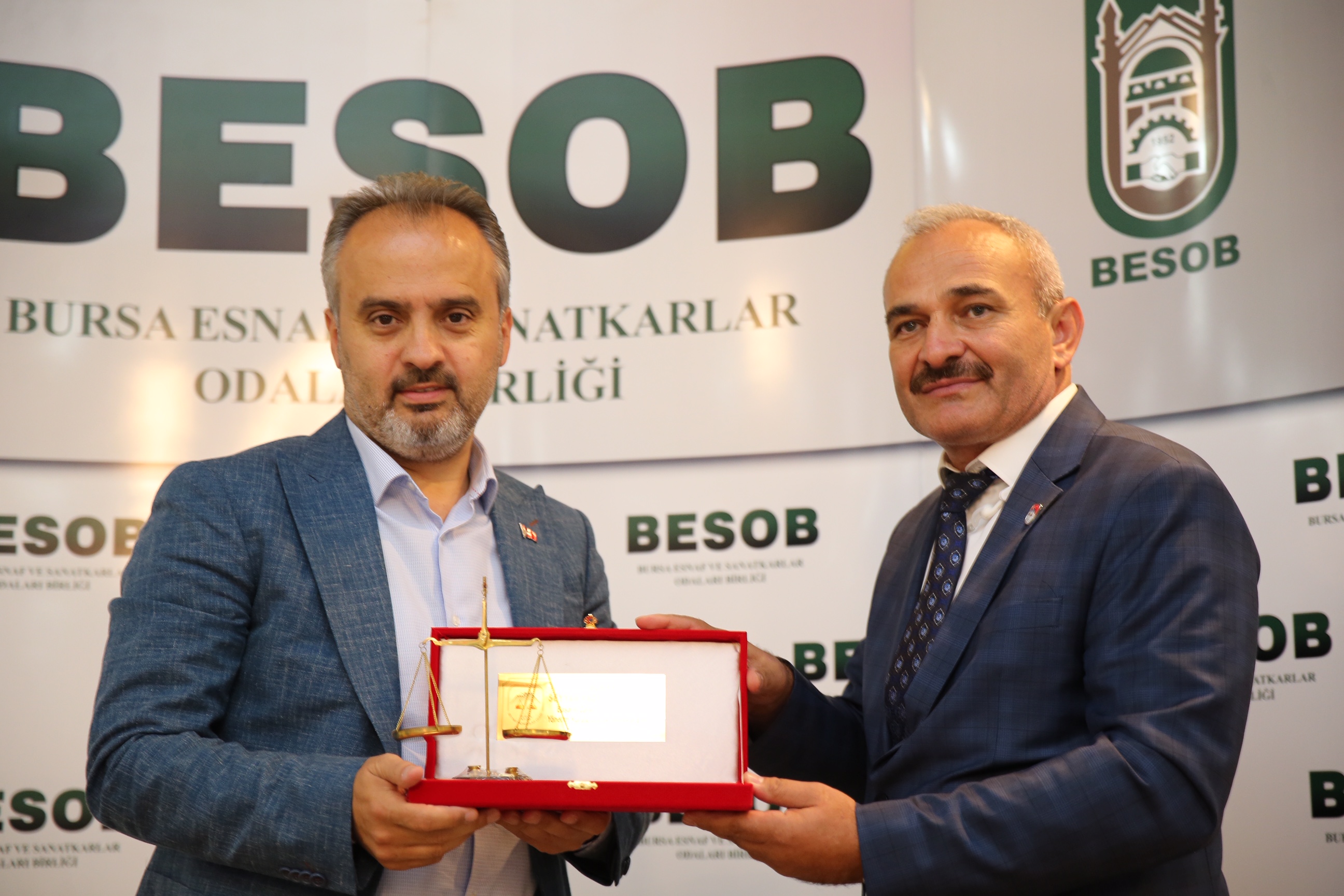 Bursa Esnaf ve Sanatkarlar Odaları Birliği (BESOB) tarafından düzenlenen istişare toplantısına katılan Bursa Büyükşehir Belediye Başkanı Alinur Aktaş, tüm odaların genel sekreterlerinin de hazır bulunduğu toplantıda esnafın sorunlarını dinledi.