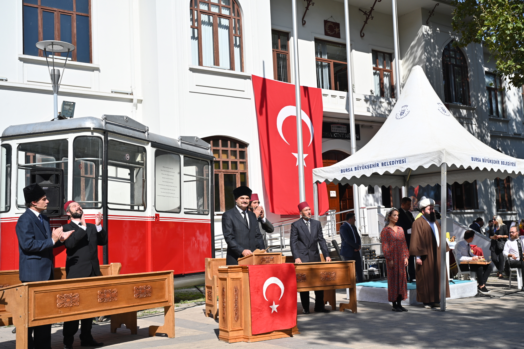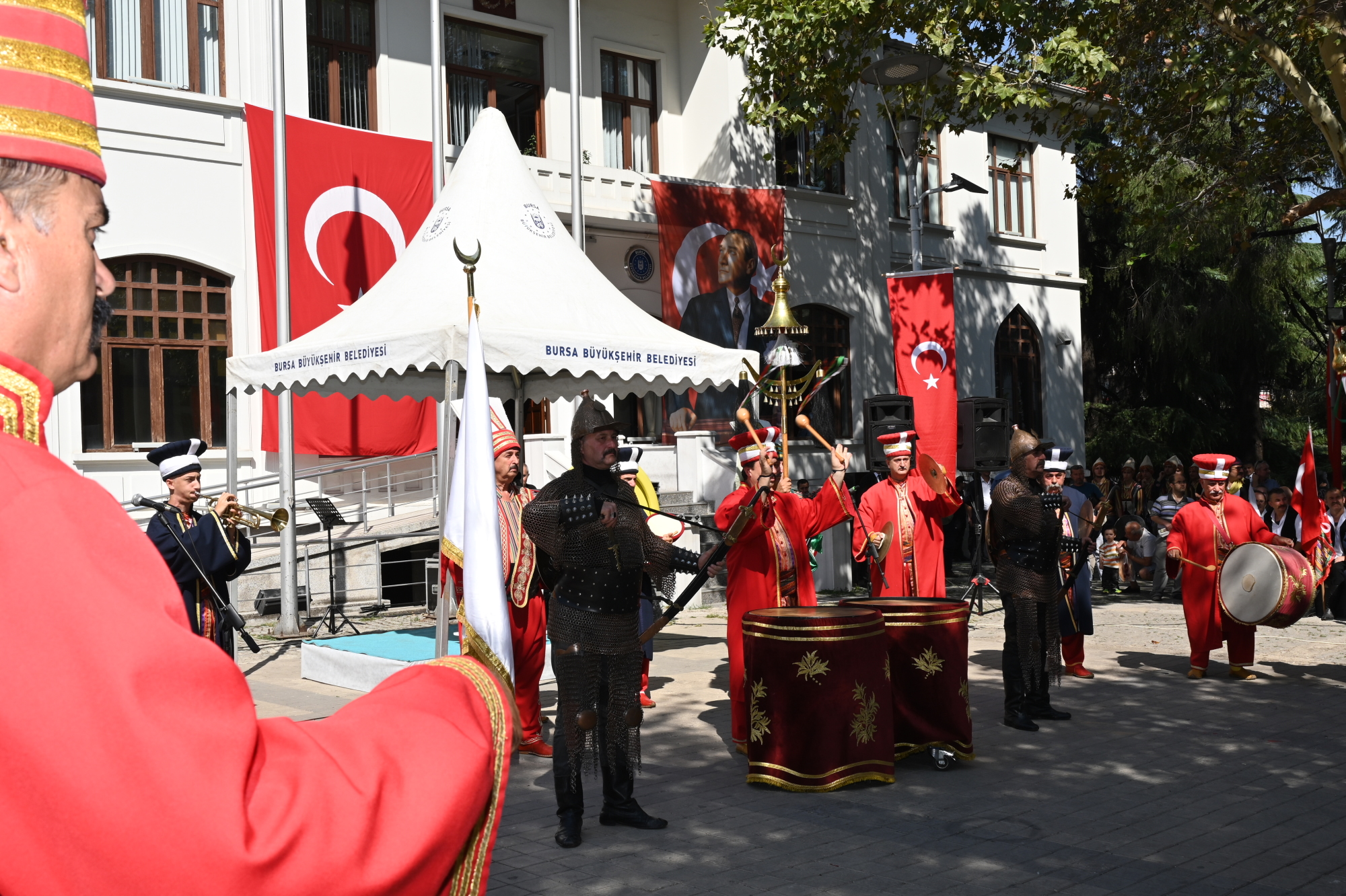 Mehter, kılıç kalkan ve halk oyunları gösterisinin ardından kutlamalar kapsamında Kent Müzesi’nde “Milli Mücadele Döneminde Bursa’nın İşgal ve Kurtuluşu 100. Yıl” sergisi ziyarete açıldı.