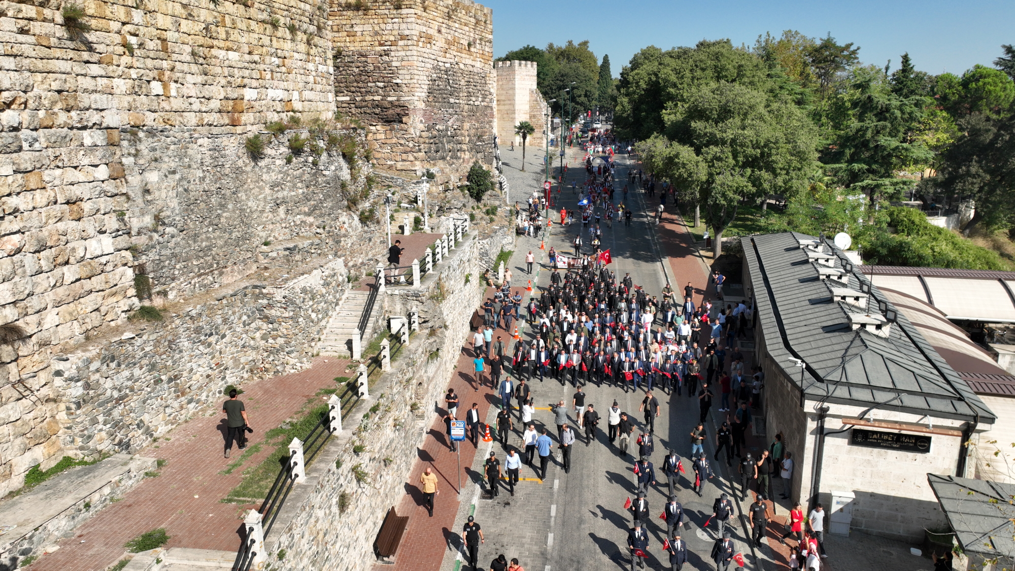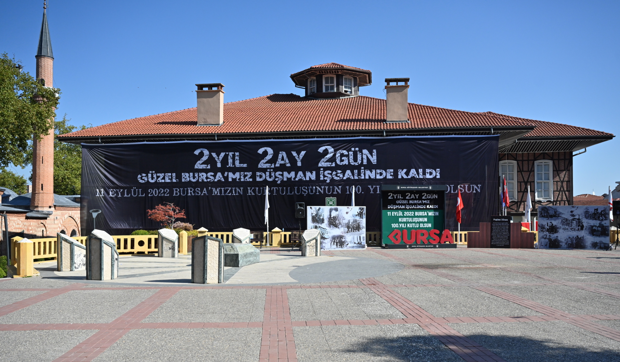 Bursa’da 2 yıl, 2ay, 2 gün süren Yunan işgalinin sona ermesinin 100 yılı kutlamaları, gece yapılan tarihi belediye binası önündeki tören ve fener alayının ardından bugün de Tophane Meydanı’ndan başlayan kortejle devam etti. Bursa Büyükşehir Belediye Bandosu ve Bursa Mehter Takımı eşliğinde gerçekleşen yürüyüşe, vatandaşlar da ilgi gösterdi. Türkiye Muharip Gaziler Derneği Bursa Şubesi üyelerinin de katıldığı kortejde, Tahtakıran Kılıç Kalkan ekibi gösterisiyle beğeni topladı. Kortejin ardından Vali Yakup Canbolat ve Büyükşehir Belediye Başkanı Alinur Aktaş, Atatürk Anıtı’na çelenk koydu. Saygı duruşu ve İstiklal Marşı’nın okunmasının ardından da tören, Bursa protokolünün ve vatandaşların katılımıyla Bursa Kent Müzesi amfi tiyatroda devam etti. Büyükşehir Belediyesi Tiyatrosu’nun Bursa’nın kurtuluşuyla ilgili tiyatro gösterisinin ardından Cumhurbaşkanı Recep Tayyip Erdoğan’ın Bursa’nın kurtuluşuyla ilgili yayınladığı mesaj okundu.