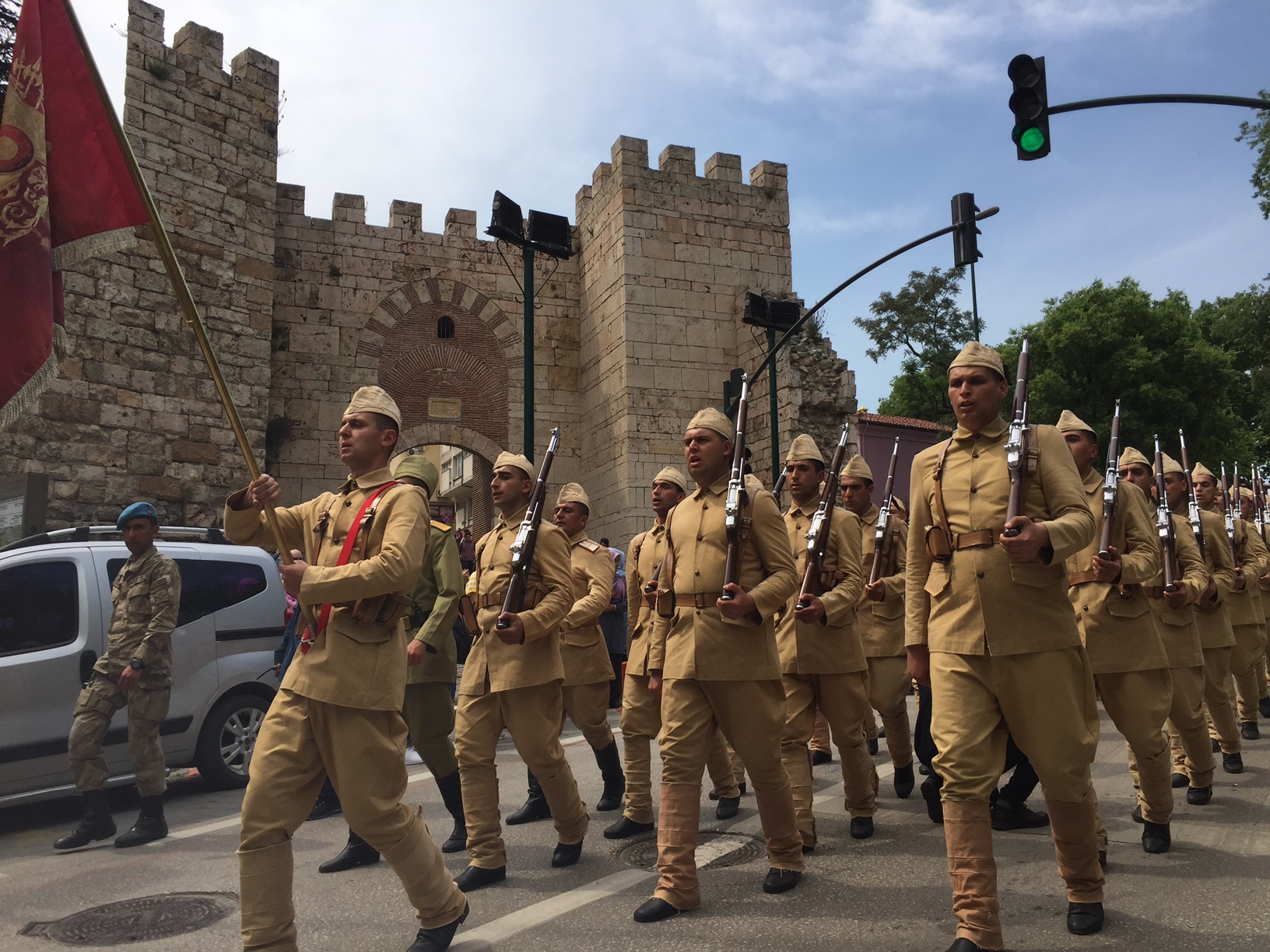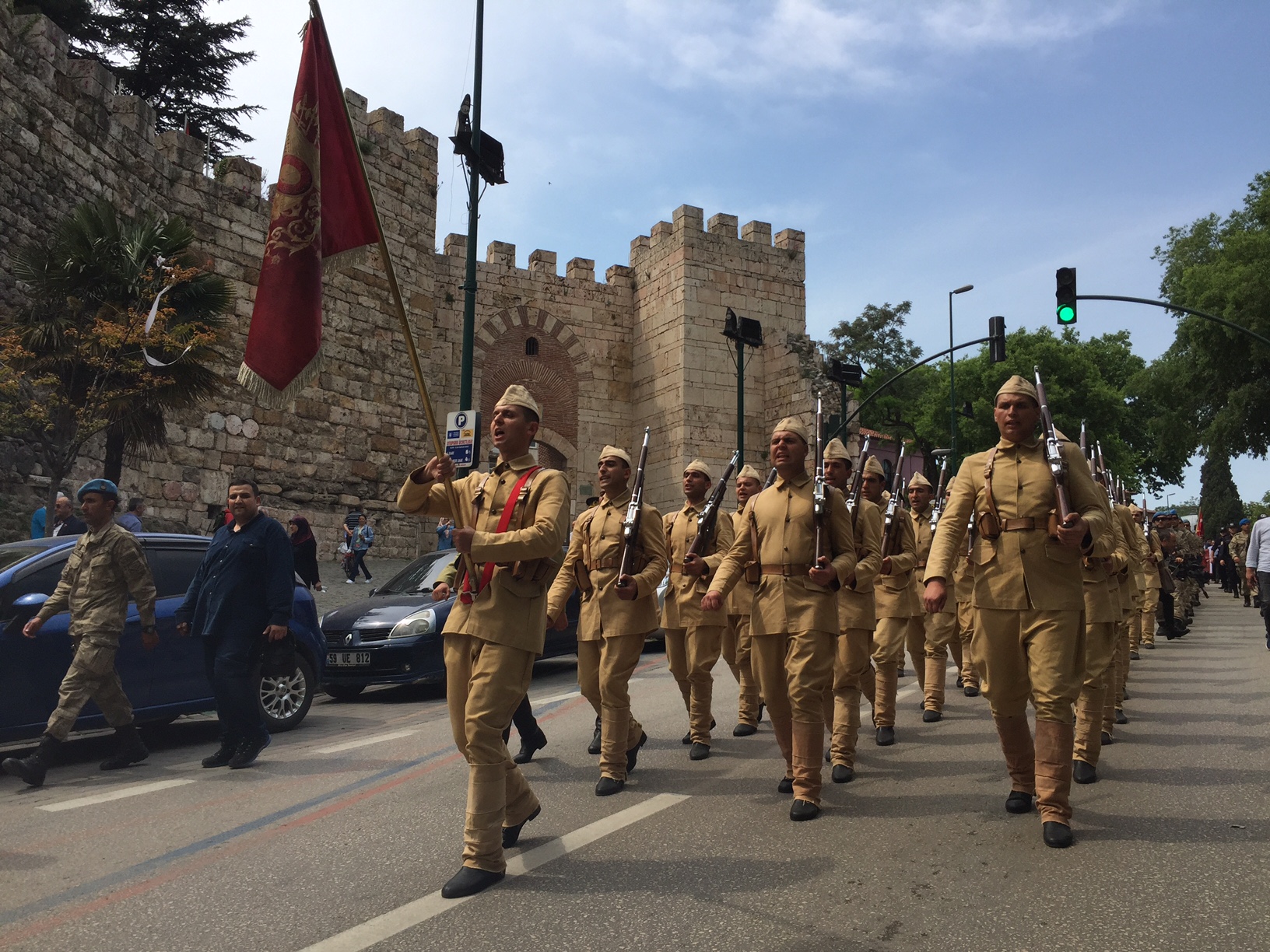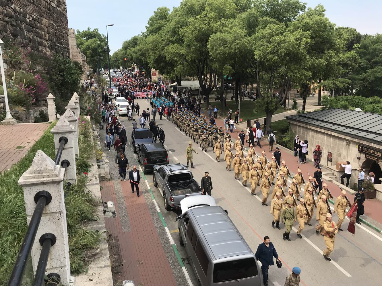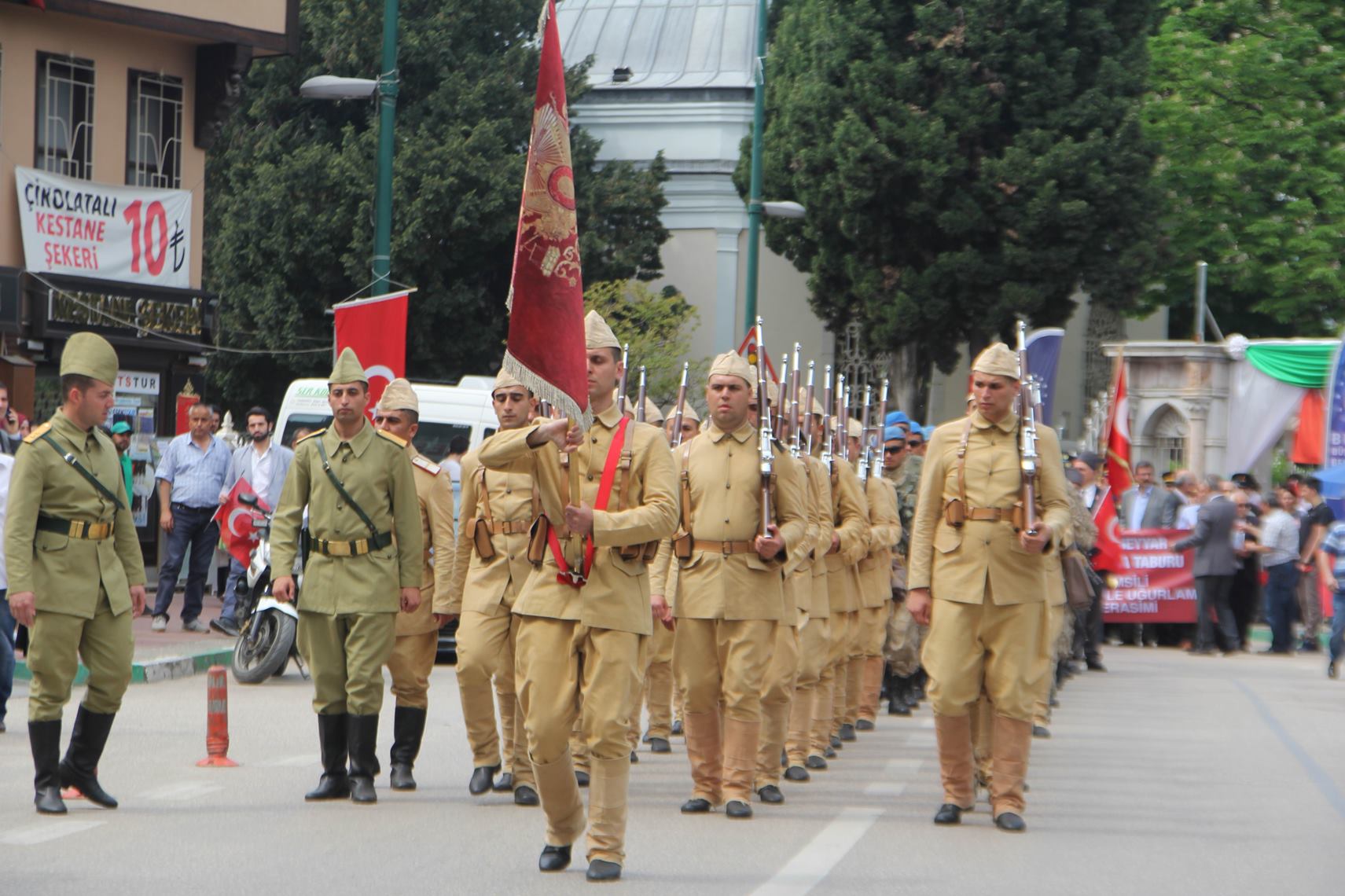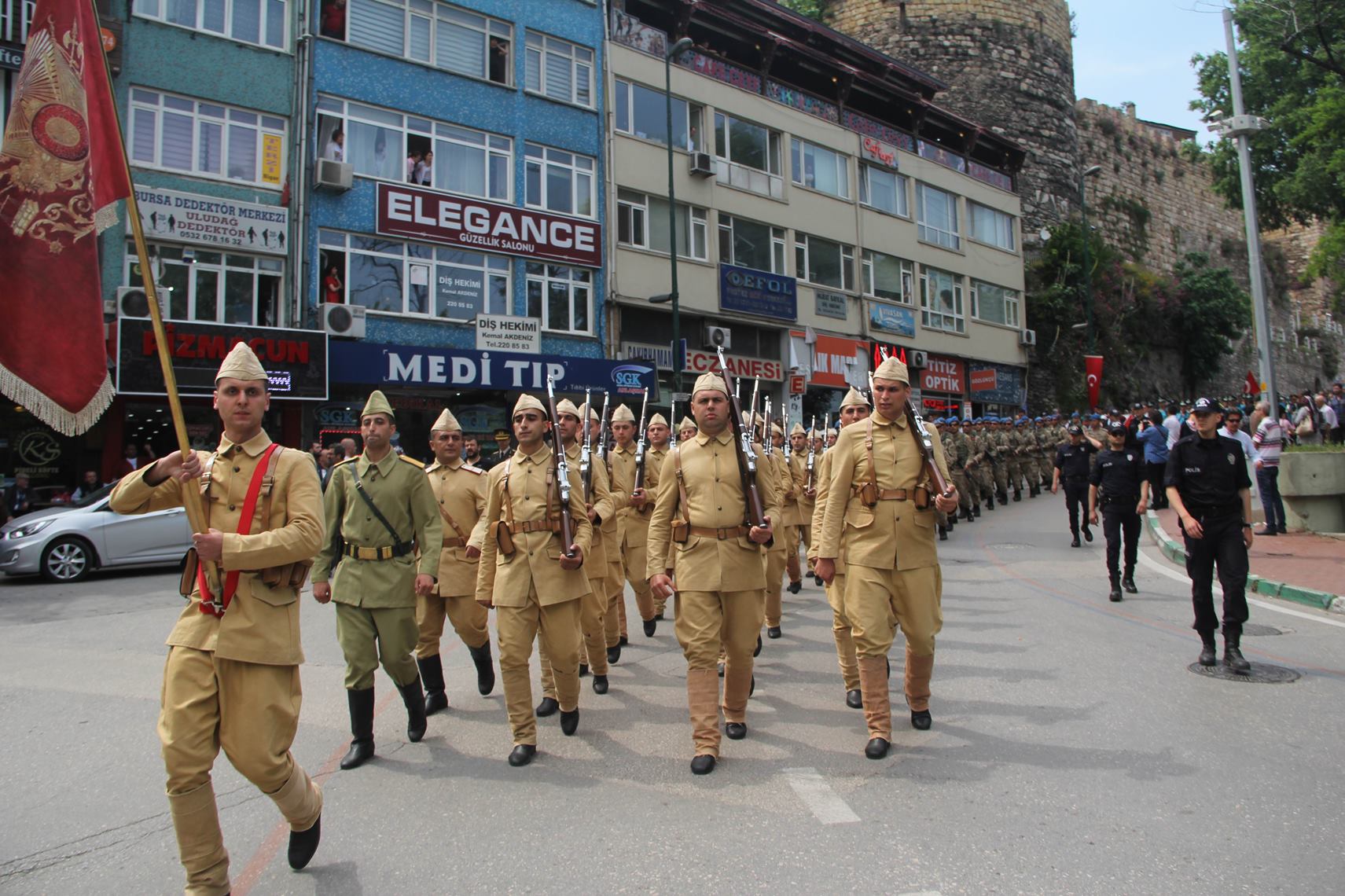 Konuşmaların ardından toplu halde dua edilmesiyle Bursa Seyyar Jandarma Taburu, temsili olarak Çanakkale’ye uğurlandı. Belediye bandosu ve protokol üyeleri eşliğinde Tophane Meydanı’ndan Ulucami yanındaki Orhan Gazi Parkı’na kadar yürüyen askerlere, vatandaşlar da tezahürat ve alkışlarla moral desteği verdi.