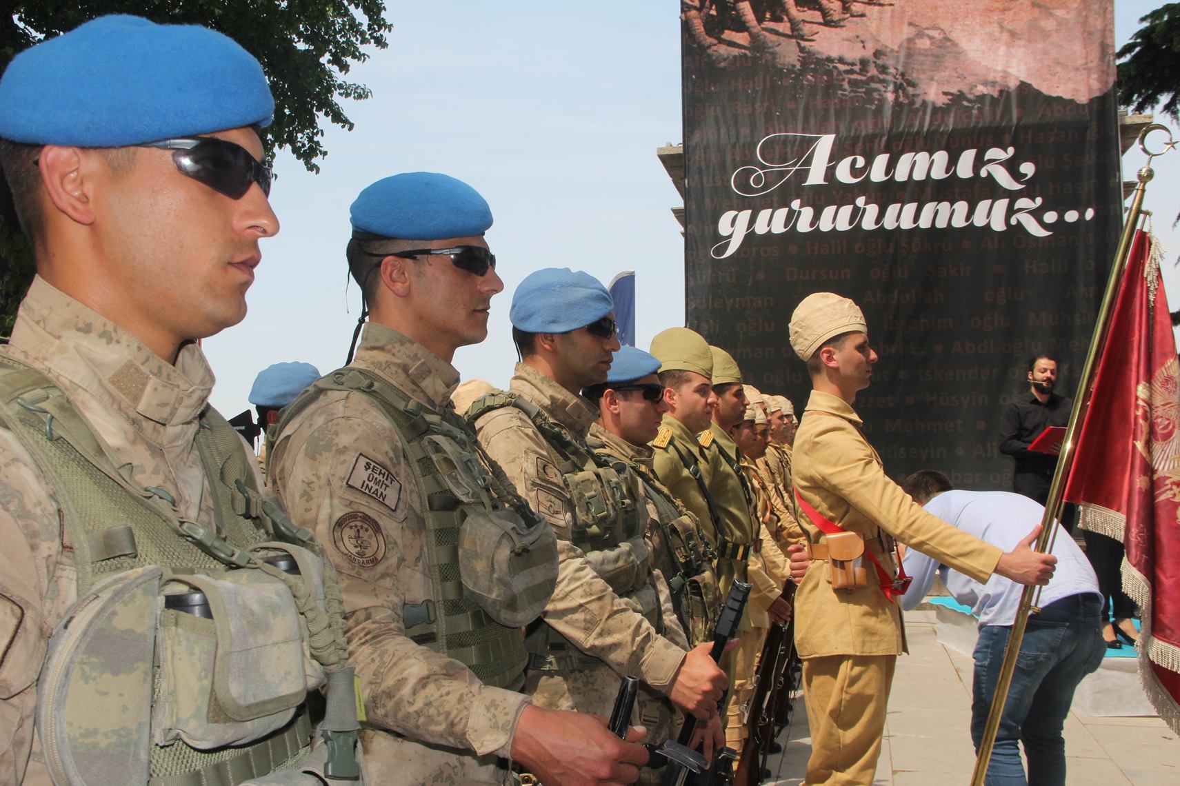 Bursa Tophane Meydanı’ndaki program, İstiklal Marşı’nın okunmasıyla başladı. Ardından Büyükşehir Belediyesi Şehir Tiyatrosu sanatçıları, ‘Bursa Seyyar Jandarma Taburu’nu tanıtan metni okudu. Tiyatrocuların seslendirmesi sırasında duygusal anlar yaşandı.