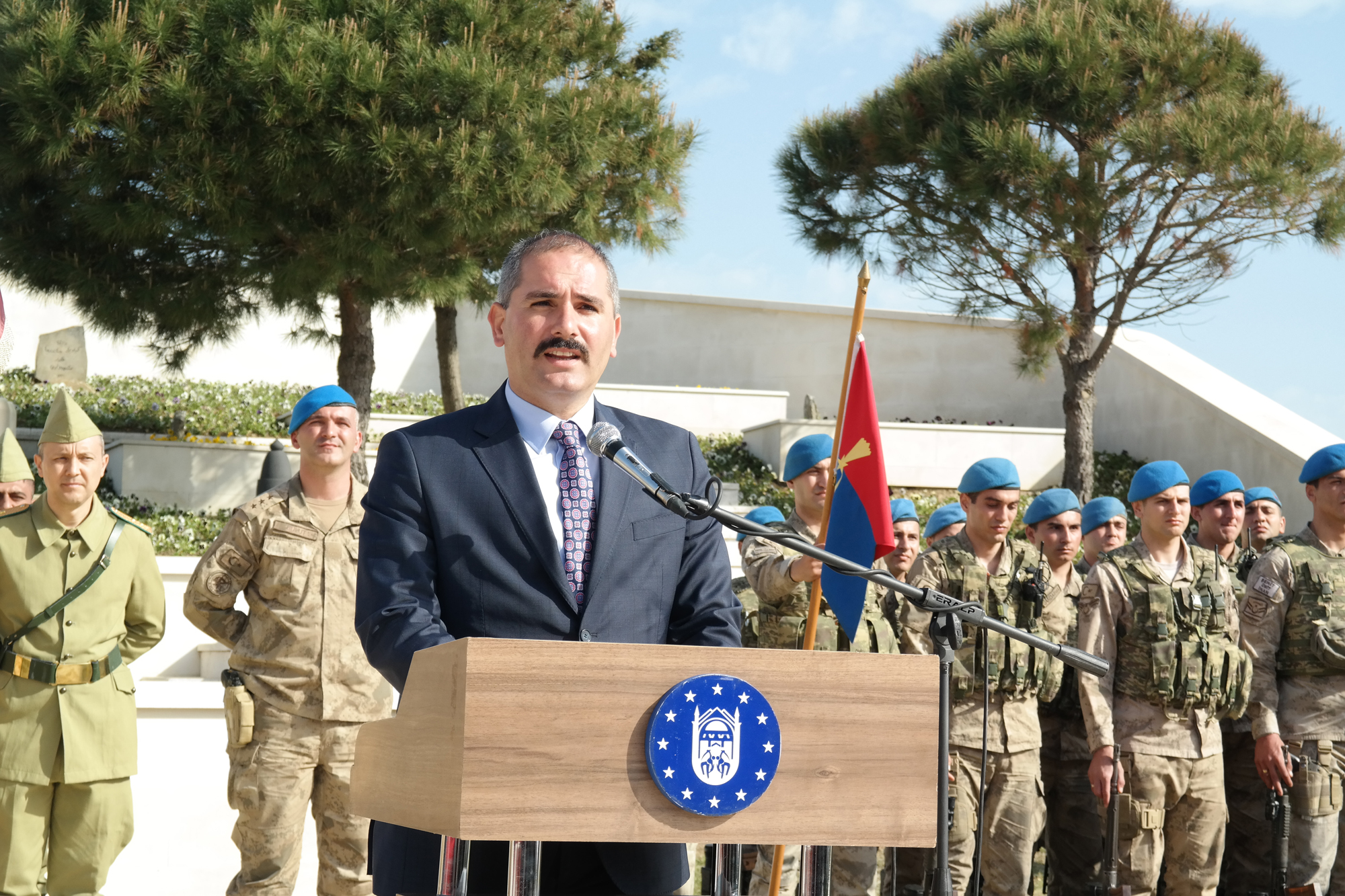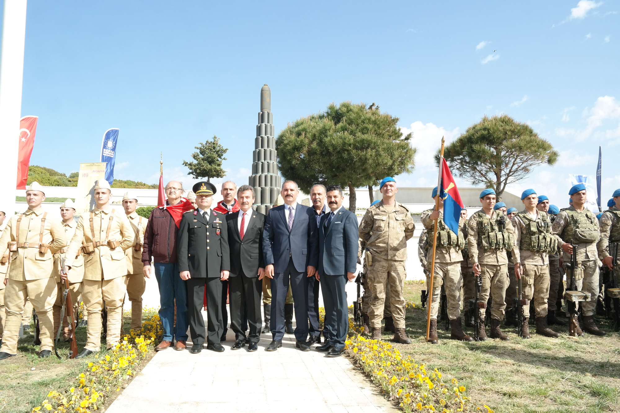 Bursa İl Jandarma Komutanlığı’ndan Jandarma Yüzbaşı Cüneyt Bulut da Çanakkale savaşlarının Türk tarihinde olduğu kadar dünya tarihine de altın harflerle kazınmış bir zaferle sonuçlandığını söyledi. Bu kahramanlık destanının yazılmasında en büyük katkıyı Bursa şehrinin verdiğini dile getiren Bulut, “Bizler Jandarma Genel Komutanlığı olarak bu kahraman Seyyar Jandarma Taburunun hatırasını yaşatmak için 2015 yılında Bursa Jandarma Özel Harekat Taburunu kurduk. Bursa JÖH Taburu da aynı atalarının yazdığı destan gibi yine topraklarımıza, vatanımıza göz diken hain terör örgütlerine karşı Cizre’de, Nusaybin’de, Sur’da kahramanlık destanları yazmıştır. Bir asın önce canlarını seve seve feda eden ecdadımıza vefa amacıyla böyle güzel bir eseri meydana getirerek nesiller arasında köprü kurmamıza imkan sağlayan fiziki mekanları oluşturan Bursa Büyükşehir Belediyemize şükranlarımı sunuyorum. Başta Ulu Önder Atatürk ve silah arkadaşları olmak üzere tüm şehitlerimizi saygı ve minnetle anıyorum” dedi.