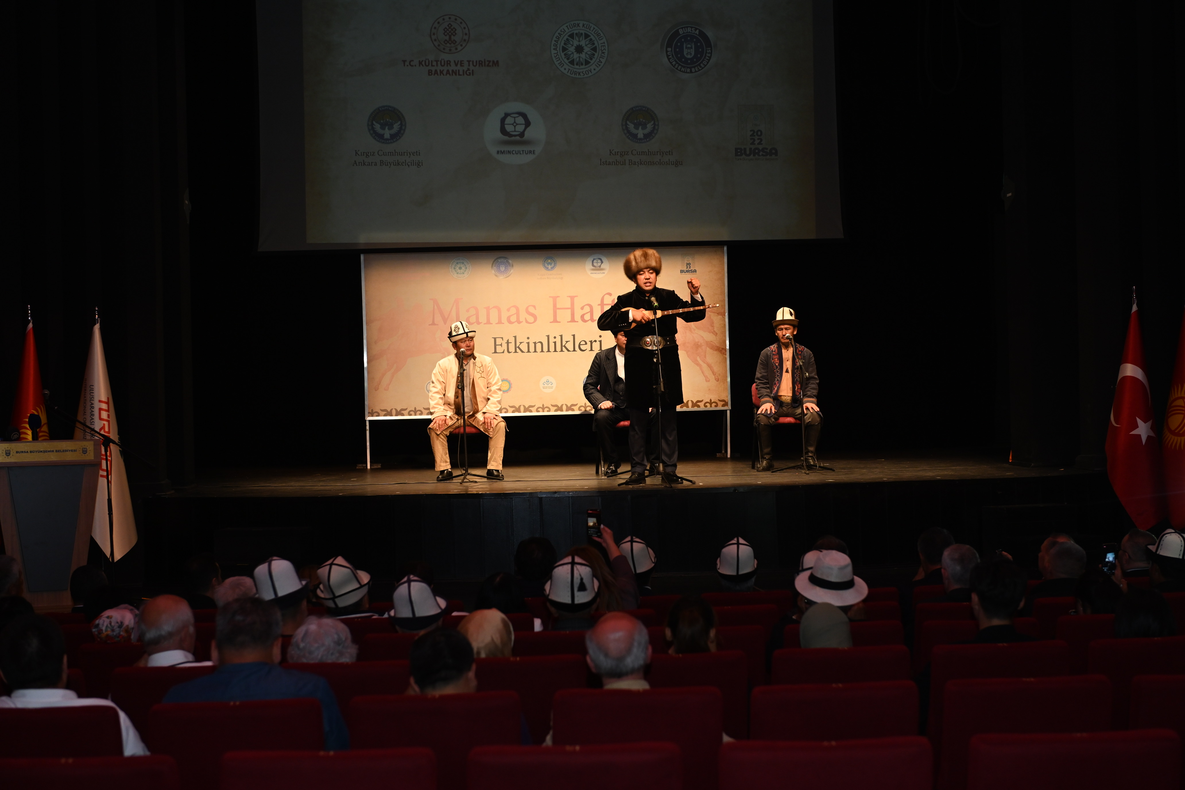 Uluslararası Türk Kültürü Teşkilatı Genel Sekreteri Sultan Raev de dünyanın en uzun destanlarından biri olan Manas’ın ‘yüzyıllar boyunca eklemeler yapılarak’ günümüze kadar ulaştığını belirterek, “Ne mutlu ki Türk Dünyası Kültür Başkenti Bursa’da bir haftadır Manas Destanı yankılandı” diye konuştu.
