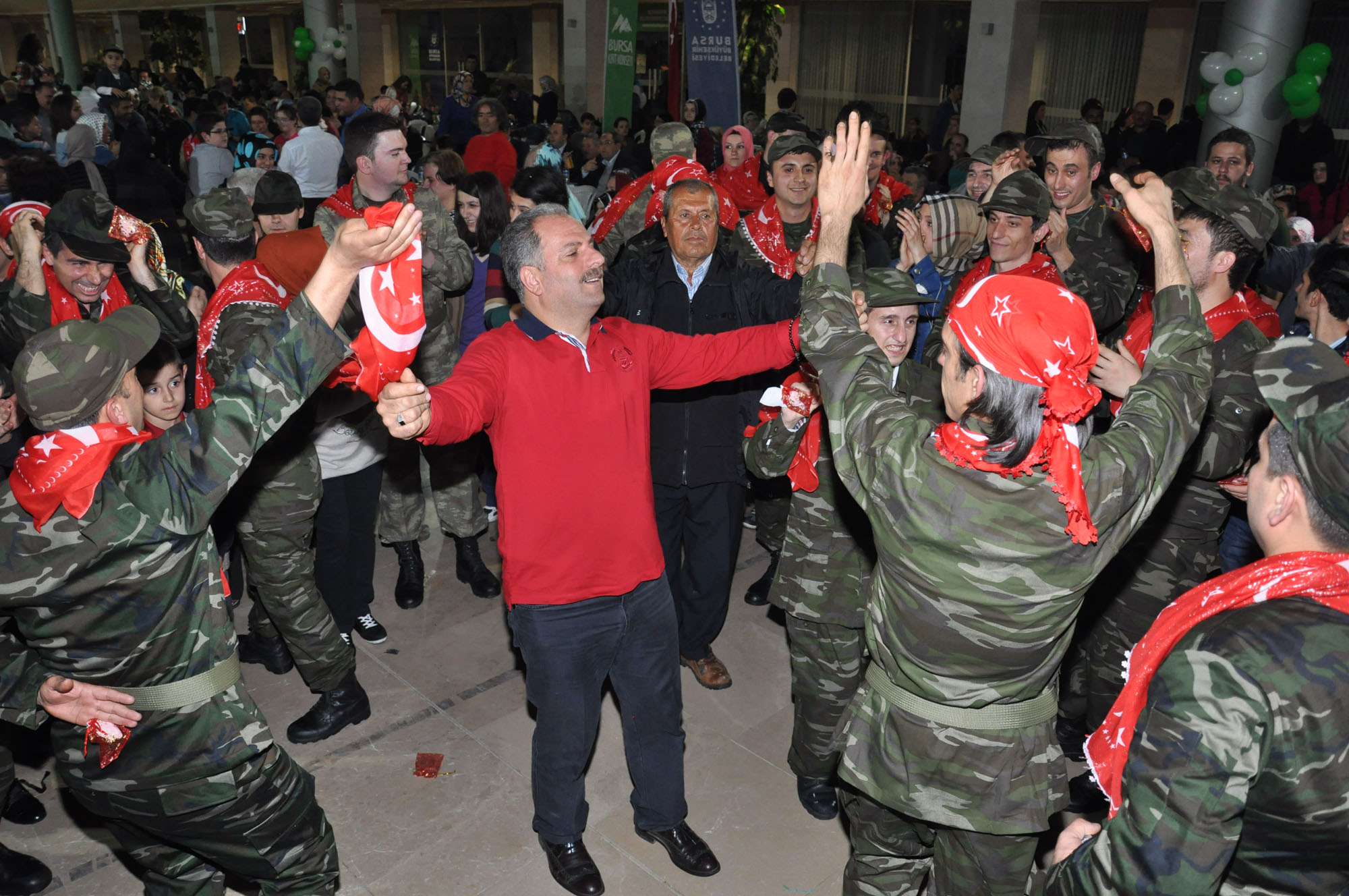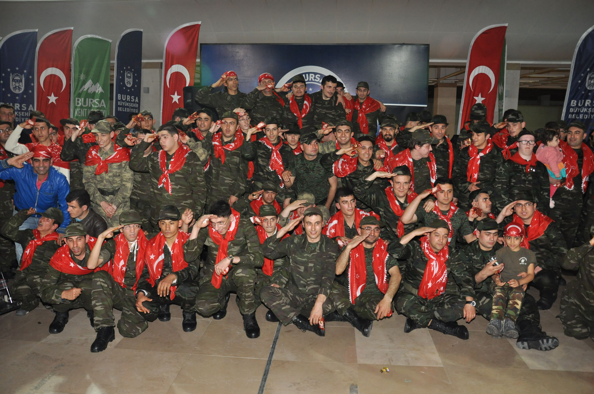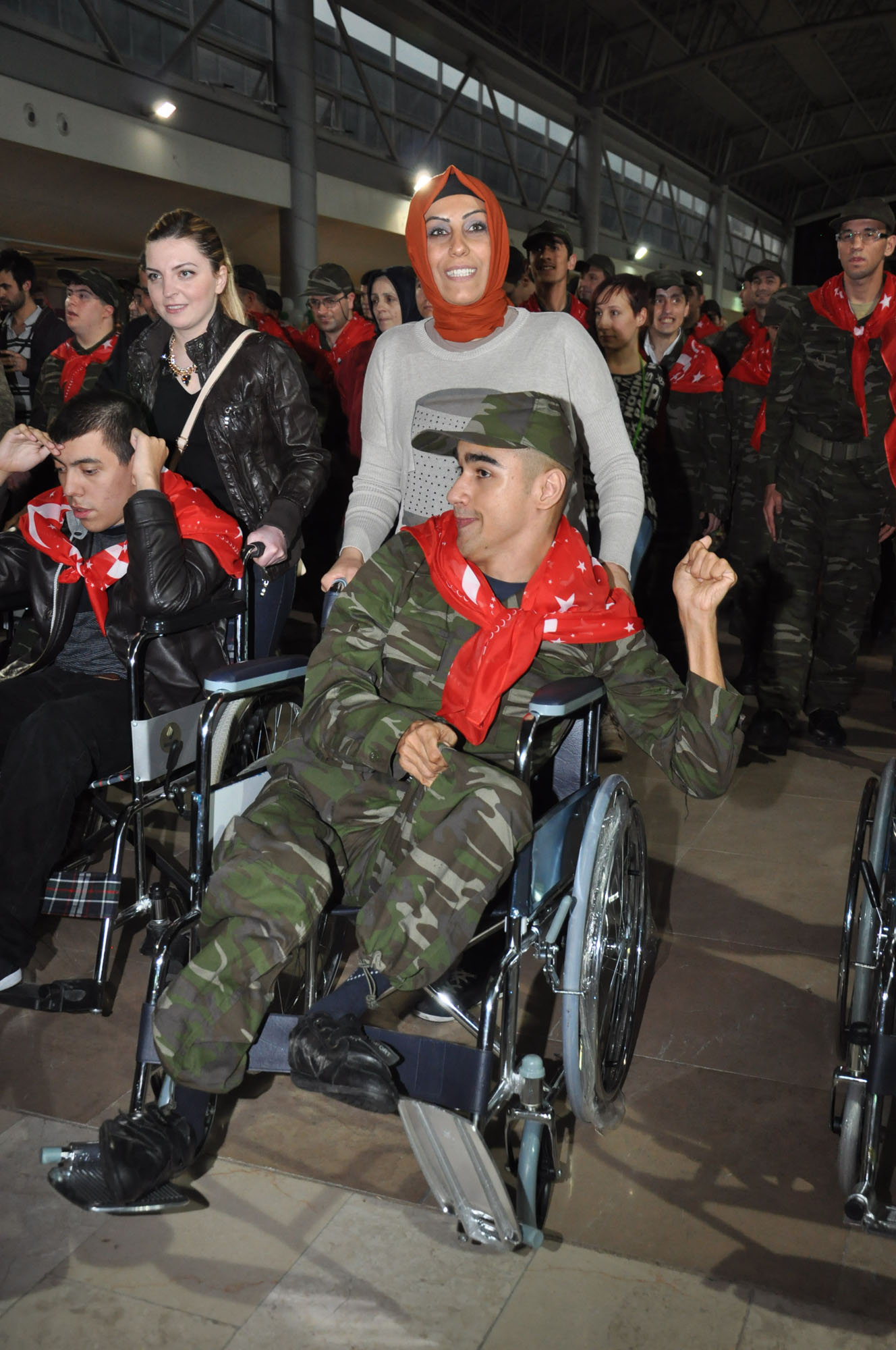 Fiziksel ve zihinsel engelleri yüzünden yaşıtları gibi askere gidemeyen gençlerin, temsili olarak vatani görevlerini yerine getirmeleri için başlatılan 1 günlük askerlik uygulamasından yararlanan 130 engelli genç, Bursa Kent Konseyi Engelliler Meclisi’nin düzenlendiği asker eğlencesinde buluştu.