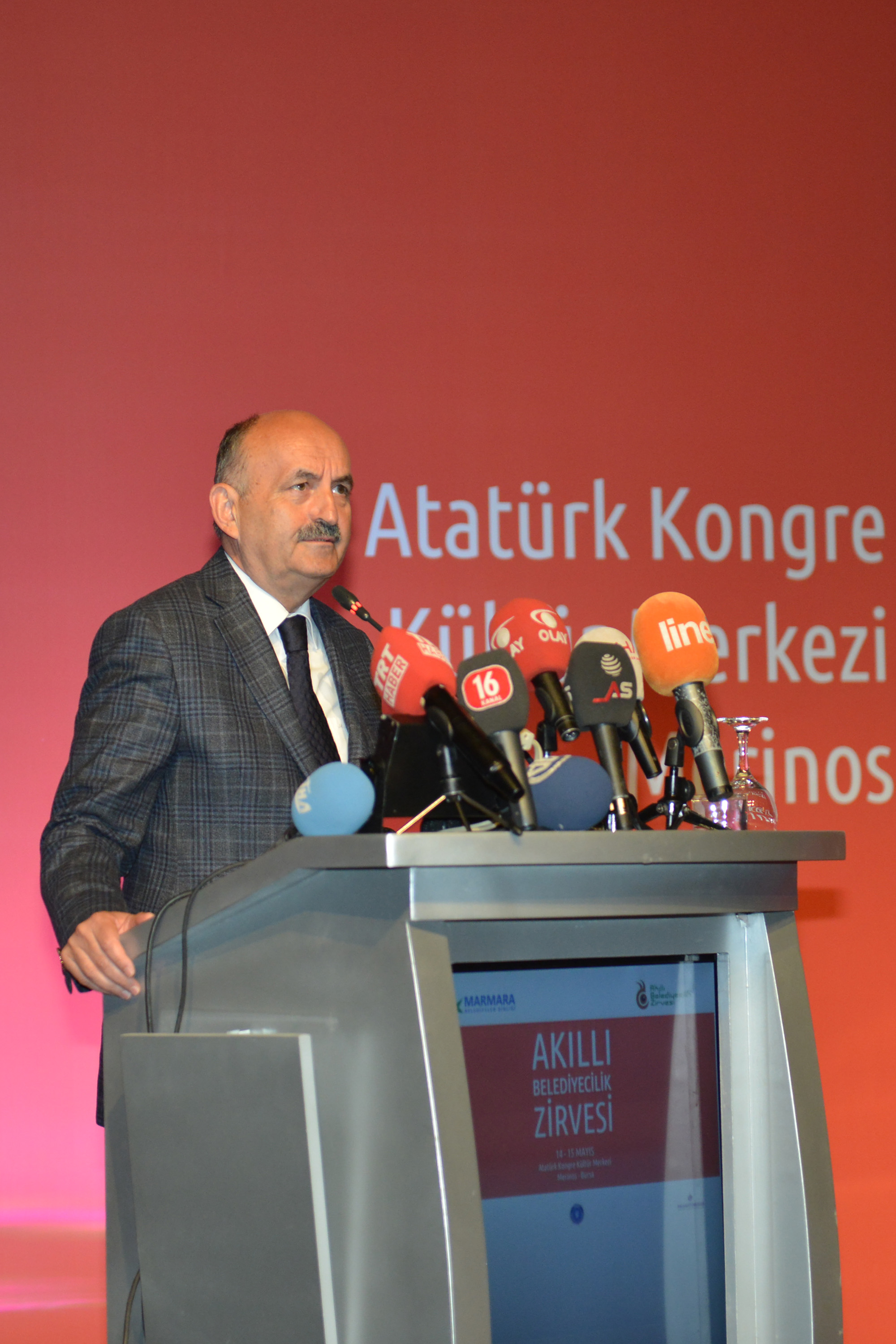 Sağlık Bakanı Mehmet Müezzinoğlu da sağlık kavramının; ruhen, fiziken ve sosyal yönden sağlıklı olma hali olarak tanımlandığını belirterek, bu her üç kavramında da doğrudan belediyecilik hizmetleriyle bağlantılı olduğunu vurguladı. Yerel yöneticilerin ‘şehirlerin hekimi’ olarak kenti geleceğe taşıma adına yapacakları çalışmalarda akıllı belediyecilik uygulamalarının büyük önem taşıdığını ifade eden Bakan Müezzinoğlu, “Şehirde kaç engelli var. Engellilik durumları nedir. Yaşlı nüfusu, hangi yaş gruplarında kaç çocuk var ve hangi hastalıkları geçirmişler. Bu gibi verileri güvenilir bir şekilde toplayan yerel yönetimler, Bakanlık olarak bizim en güçlü partnerimiz oluyor. Örneğin 100 bin kişilik bir mahalle veya ilçede tüketilen su miktarı, suyun kalitesi, bireysel tüketim gibi verilerin hesaplanması çok önemli. Sağlıklı veri akışı ve verilerin akılcı değerlendirilmesi sayesinde bir şehrin gelecek vizyonu belirlenir. Biz Sağlık Bakanlığı olarak teknolojiyi en iyi şekilde kullanan birimlerden biriyiz. Uygulamaya giren e-nabız’la birlikte artık bir vatandaşımız sağlığıyla ilgili tüm verileri artık cebinde taşıyabiliyor. Ne zaman ameliyat olmuş, hangi ilaçları kullanmış. Halkımız istediği zaman istediği kişiyle bu bilgileri paylaşabilecek. Hayatı kolaylaştıran çözümlerin ve teknolojik gelişmelerin yerel yönetim uygulamalarına da aktırılması açısından bu zirveyi çok önemsiyorum” dedi.