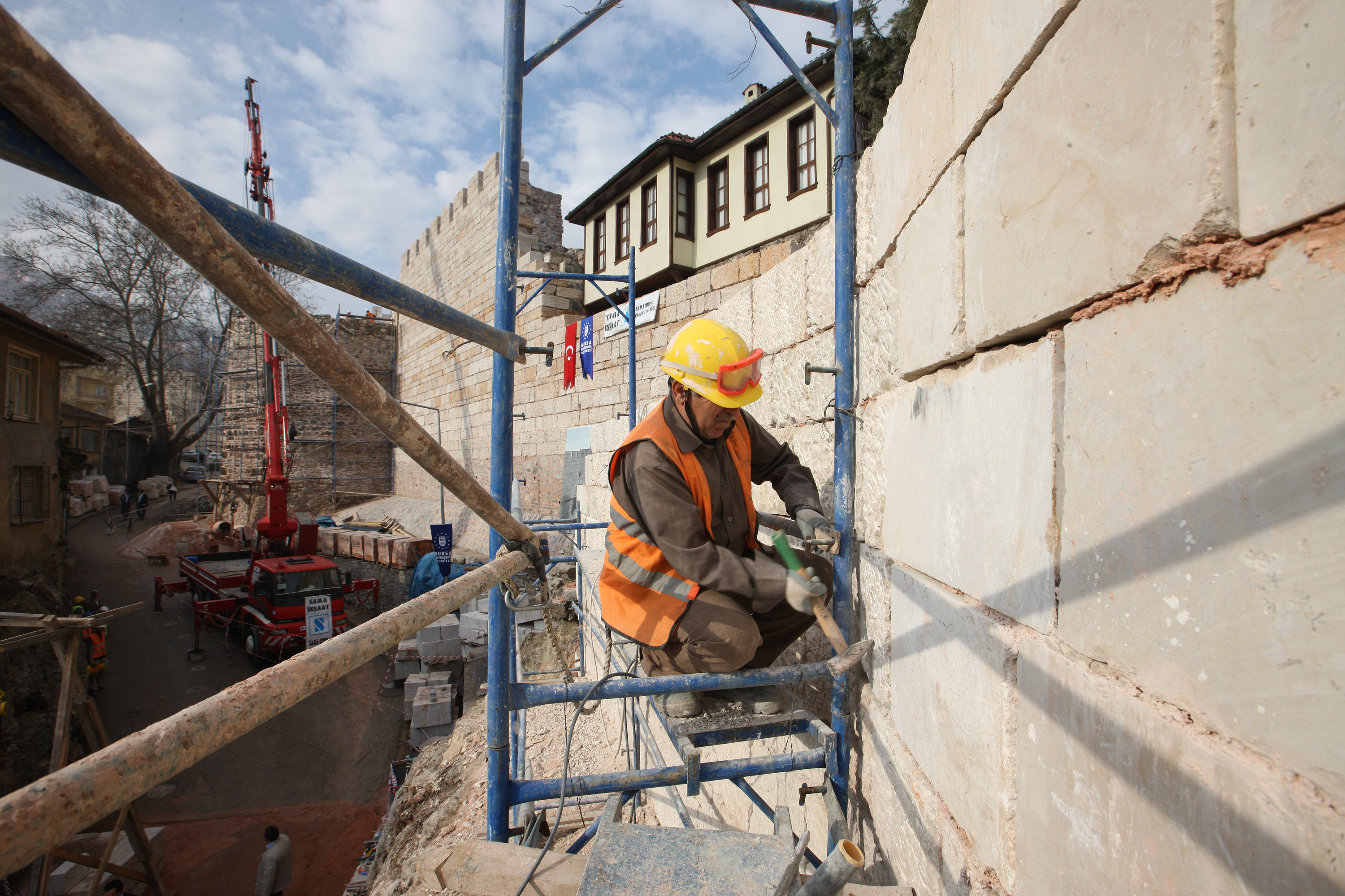 BURSA – Bursa Büyükşehir Belediyesi, yaklaşık 2 bin 300 yıllık bir geçmişi olan tarihi bulmacada taşları bir bir yerine koyuyor. Bitinya döneminde yaptırılan 14 burç ve 5 kapısı bulunan 3 bin 400 metre uzunluğundaki surlarla ilgili verileri tarihin tozlu raflarından titiz çalışmalarla çıkaran Büyükşehir Belediyesi, tarihi surların Tahtakale’ye açılan kapısı olan Yokuş Caddesi Kapısı’ndaki restorasyon çalışmalarını başlattı.