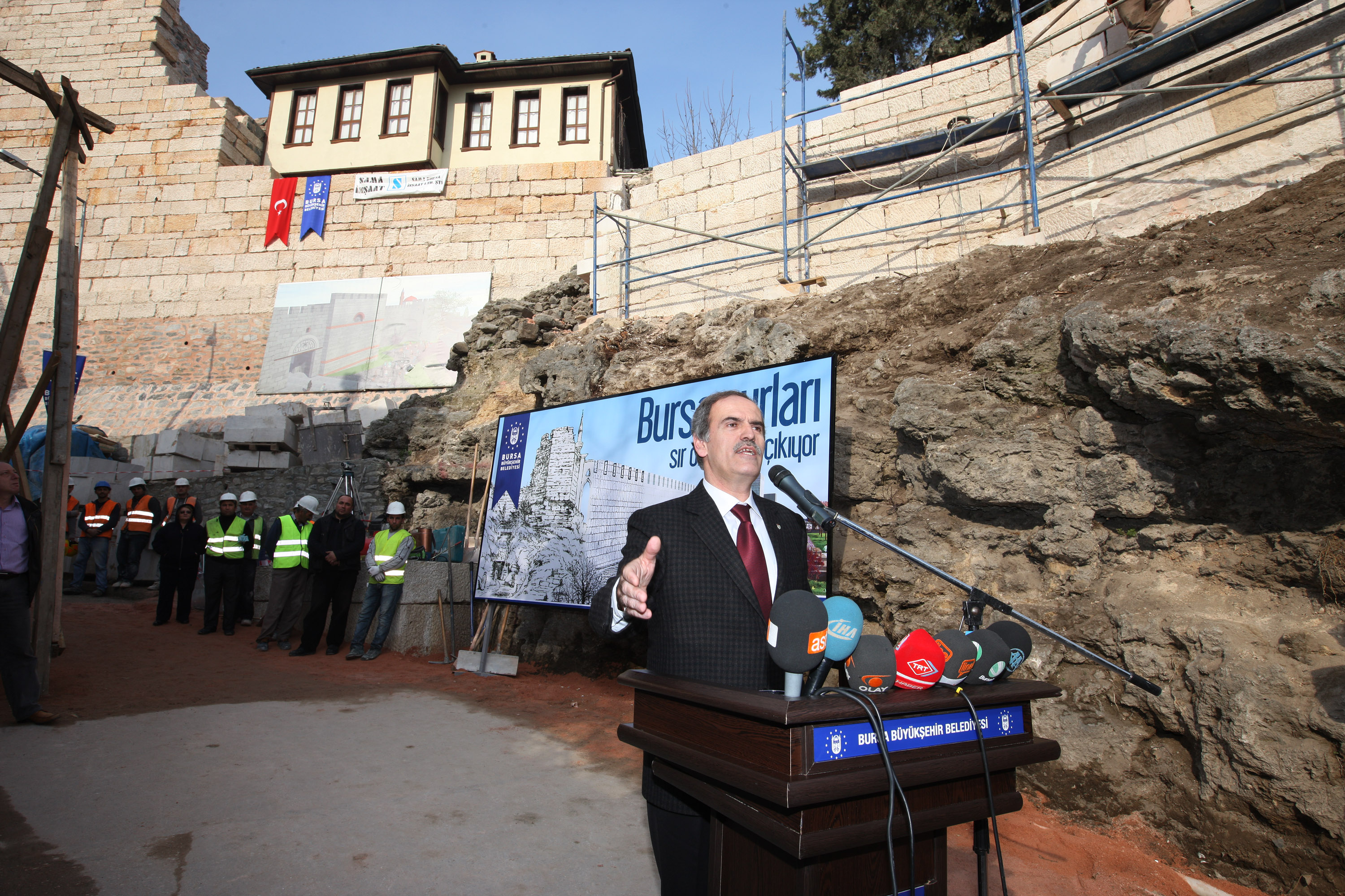 Osmangazi Belediye Başkanı Mustafa Dündar da Büyükşehir Belediyesi tarafından surlarla ilgili çalışmalar yoğun olarak yürütülürken, kendilerinin de Hisar içi bölgesine yönelik çalışmalarının devam ettiğini söyledi. Hisar içinin eski şehir kimliğiyle yeniden ayağa kaldırılmasıyla ilgili arkeopark çalışmalarının devam ettiğini belirten Başkan Dündar, “Modern şehirciliği tarihle buluşturuyoruz. Yapılan tarihi kültürel miras çalışmaları burada da gördüğünüz gibi bazı çarpık yapıları da ortaya çıkarıyor. Burada da surlar üzerinde tescilli bir bina bulunuyor. Tüm bunları bir bütün olarak değerlendirip, kent siluetini aslına uygun hale getirmeye çalışıyoruz” dedi.